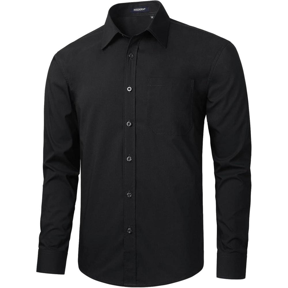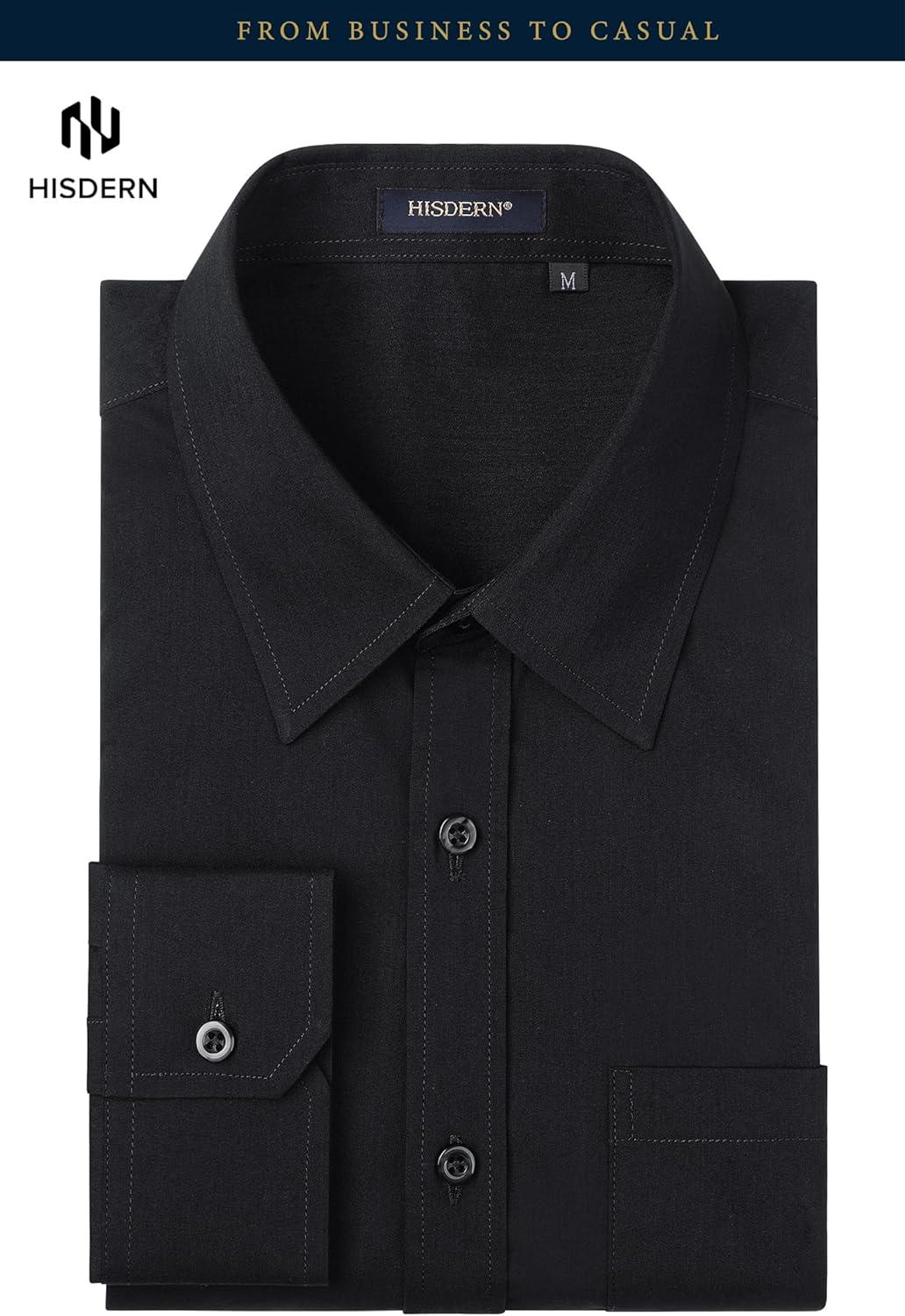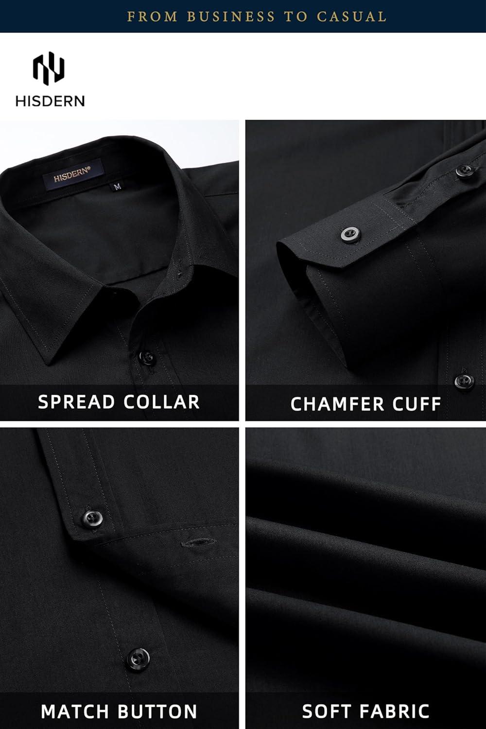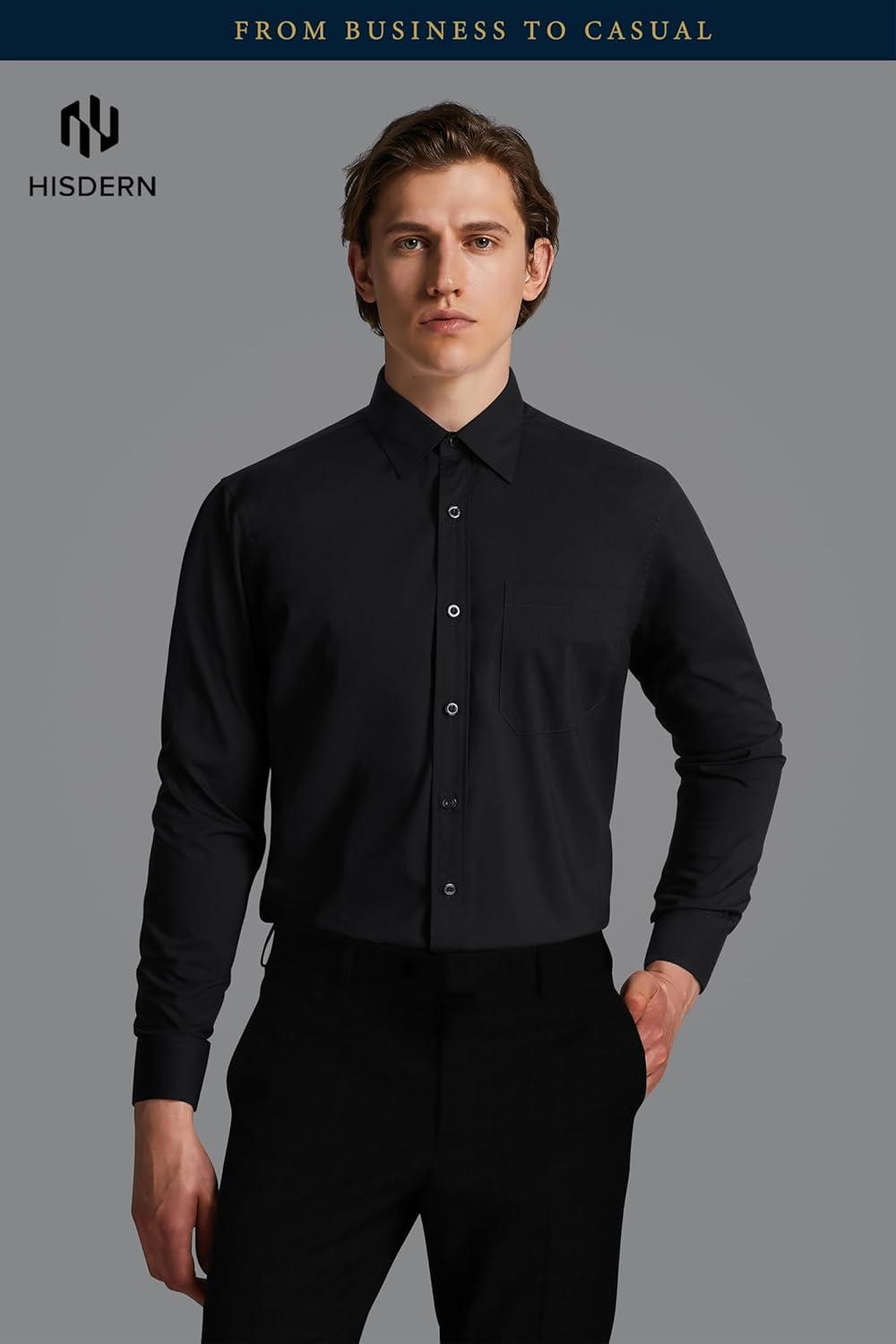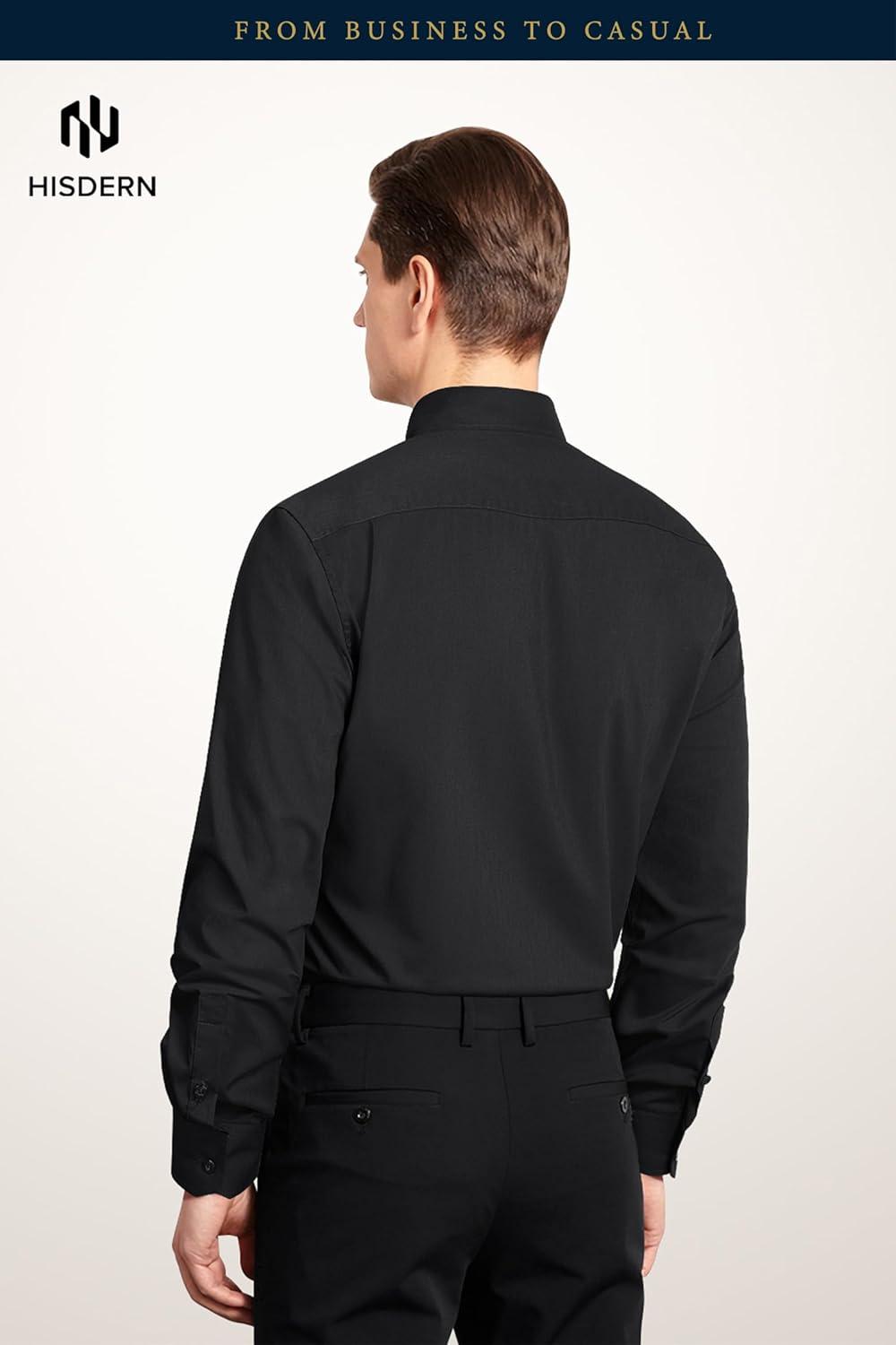 HISDERN 101C Men’s Dress Shirts Long Sleeve Easy Care Quick Dry Breathable Regular Fit Formal Business Casual S-4XL(Black)
