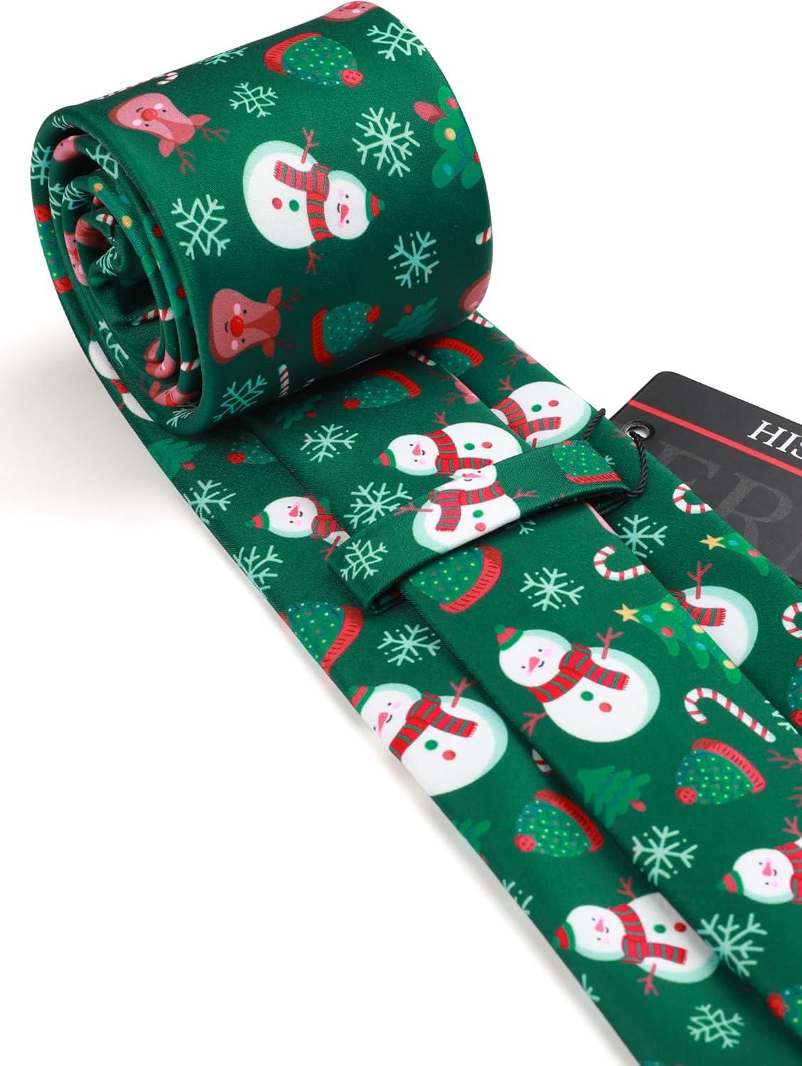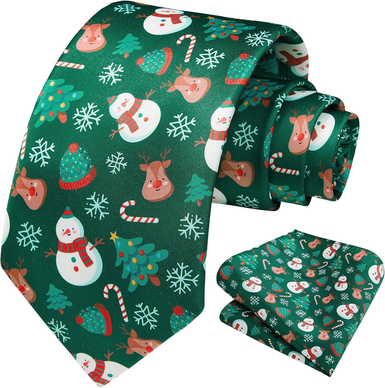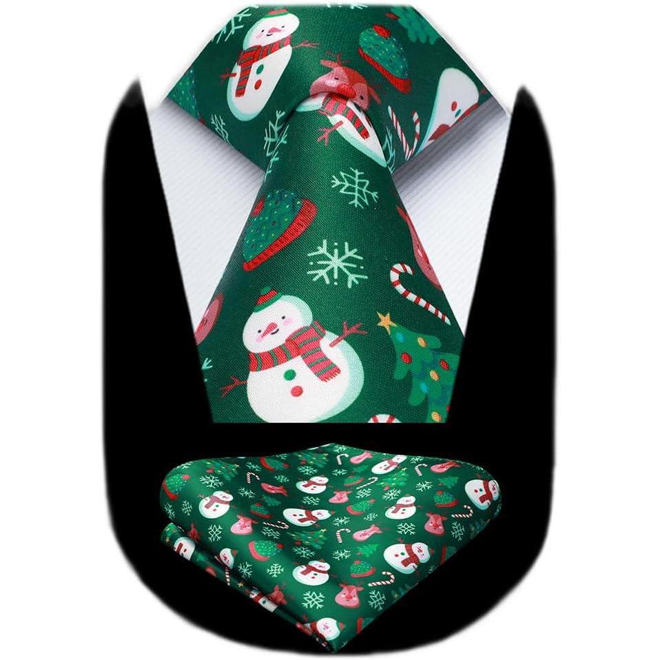 imageHISDERN Christmas Ties for Men Holiday Festival Funny Tie and Pocket Square Set Vacation Xmas Party Necktie HandkerchiefA6 GreenSock