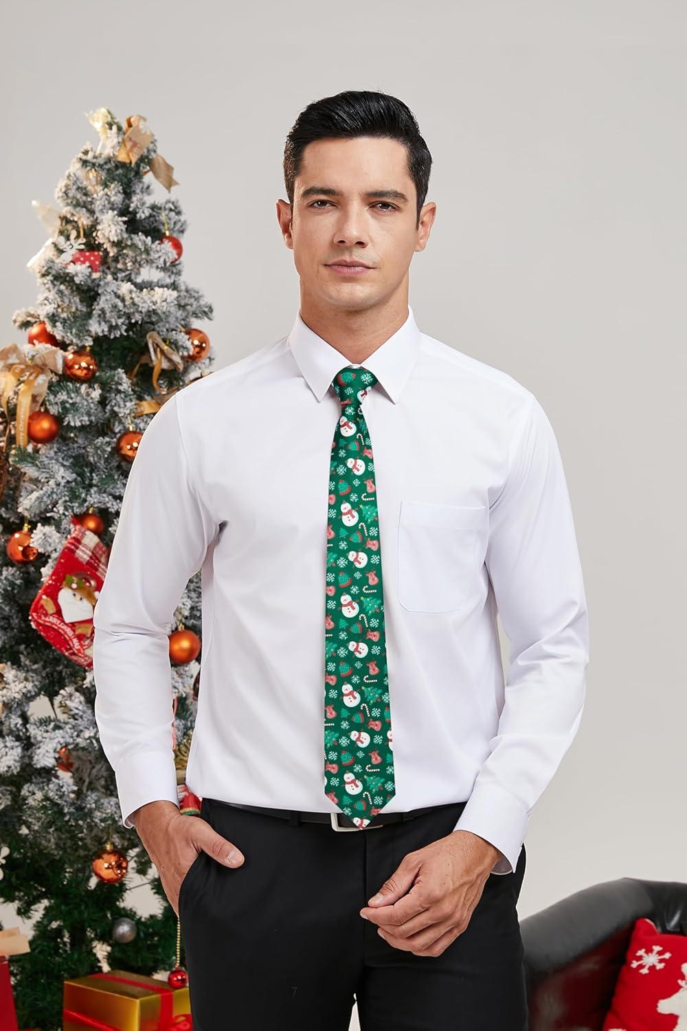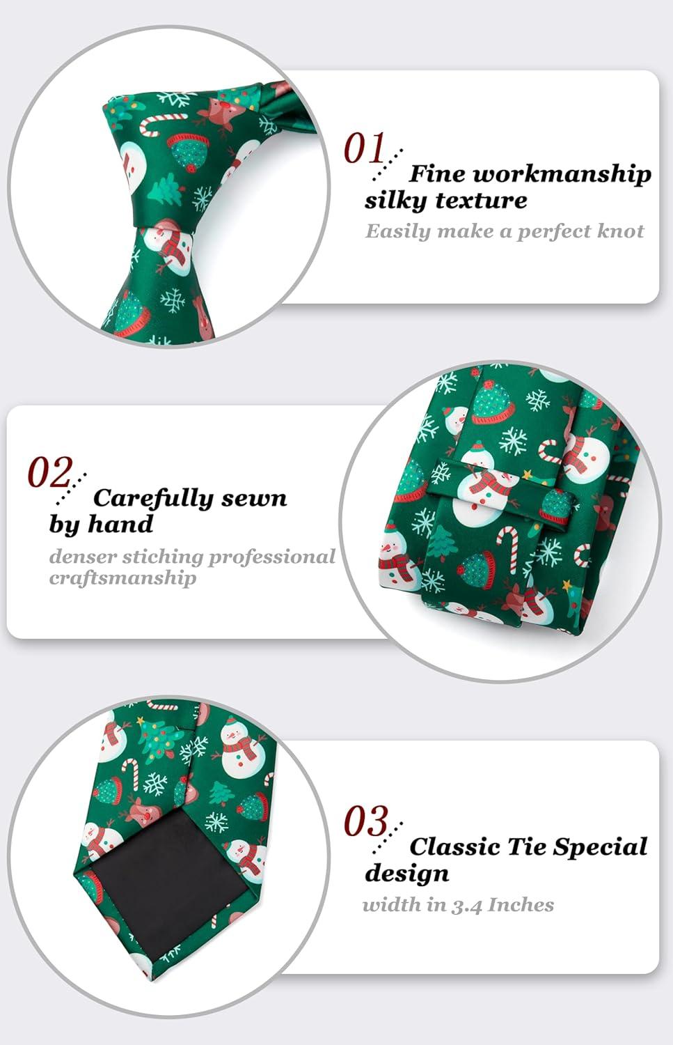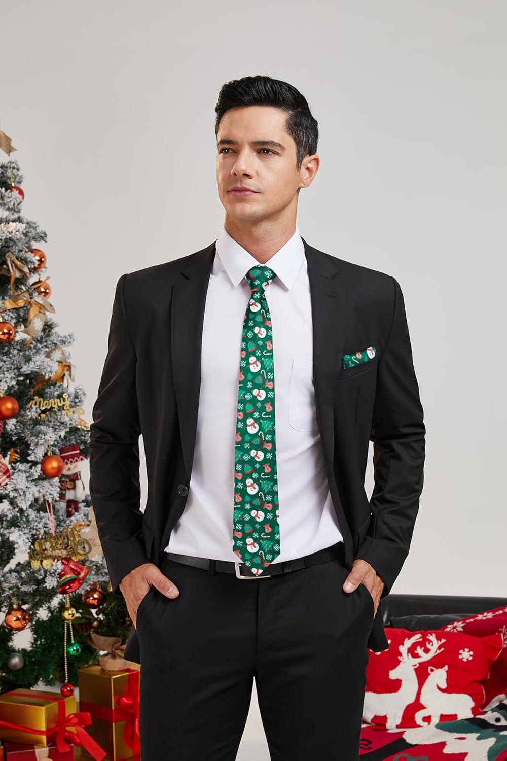 imageHISDERN Christmas Ties for Men Holiday Festival Funny Tie and Pocket Square Set Vacation Xmas Party Necktie HandkerchiefA6 GreenSock
