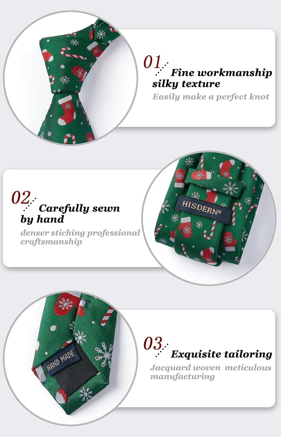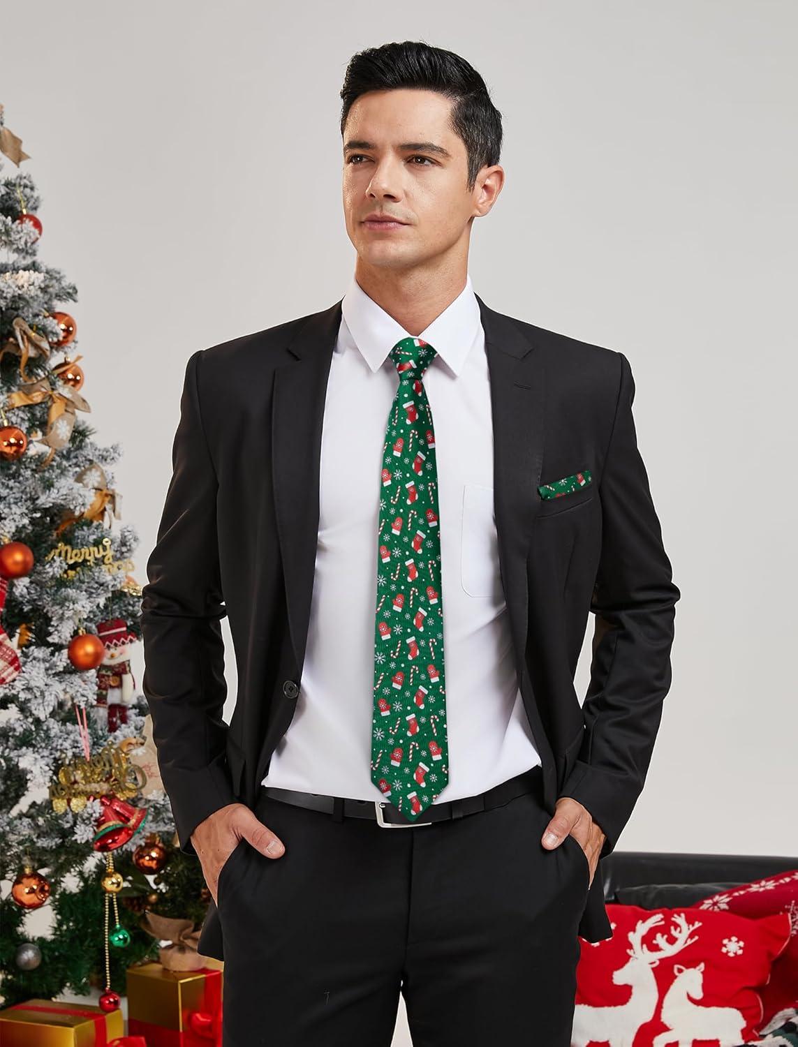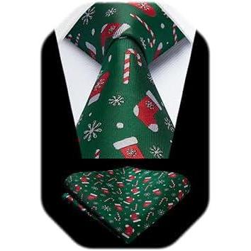 imageHISDERN Christmas Ties for Men Holiday Festival Funny Tie and Pocket Square Set Vacation Xmas Party Necktie HandkerchiefA5 Hunt Green