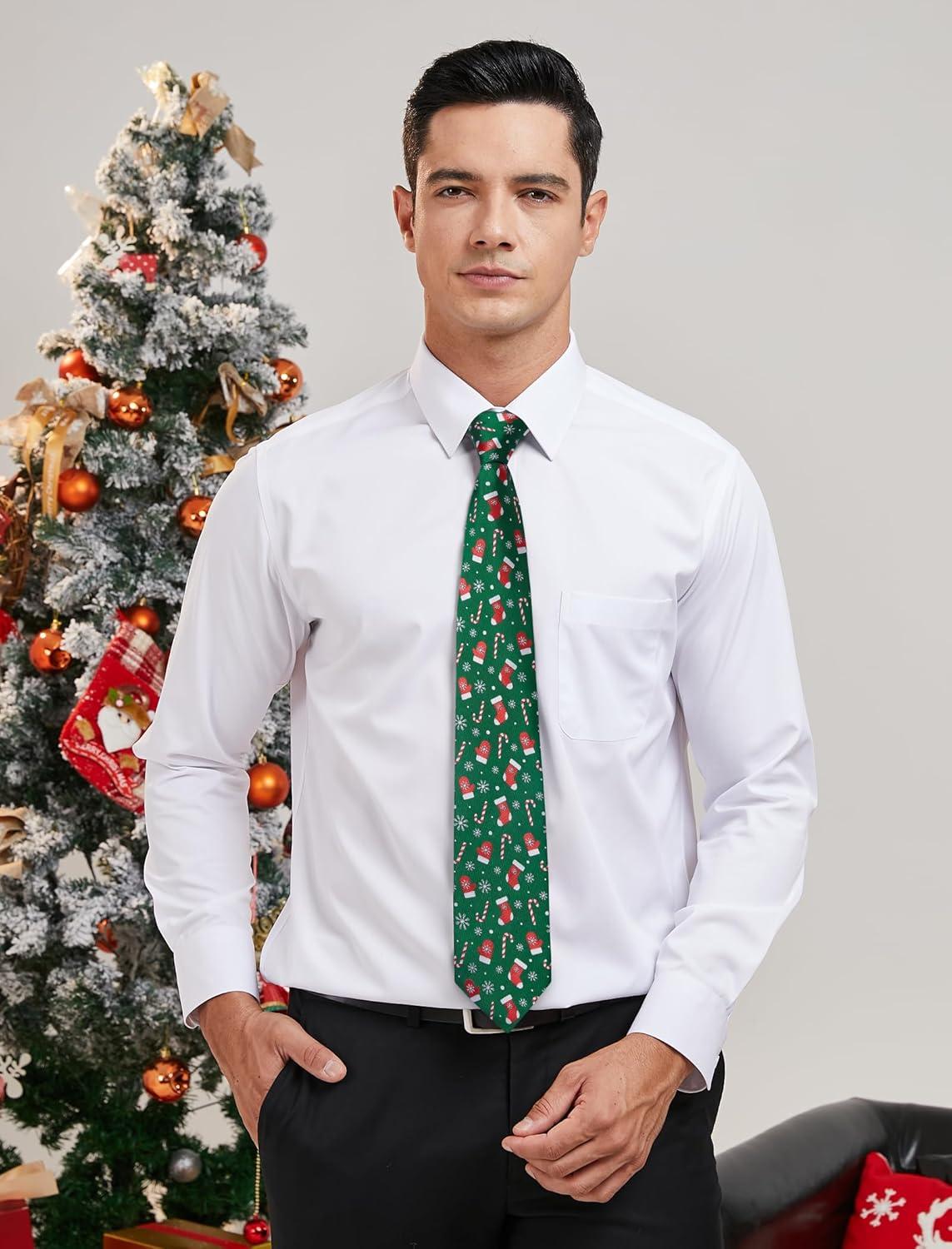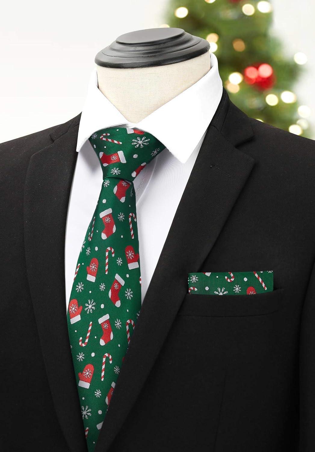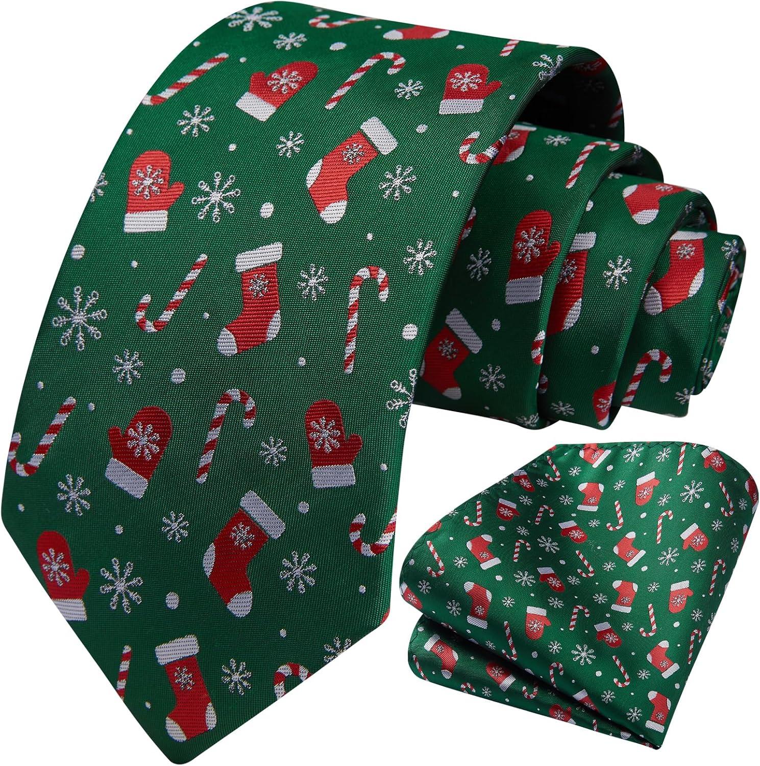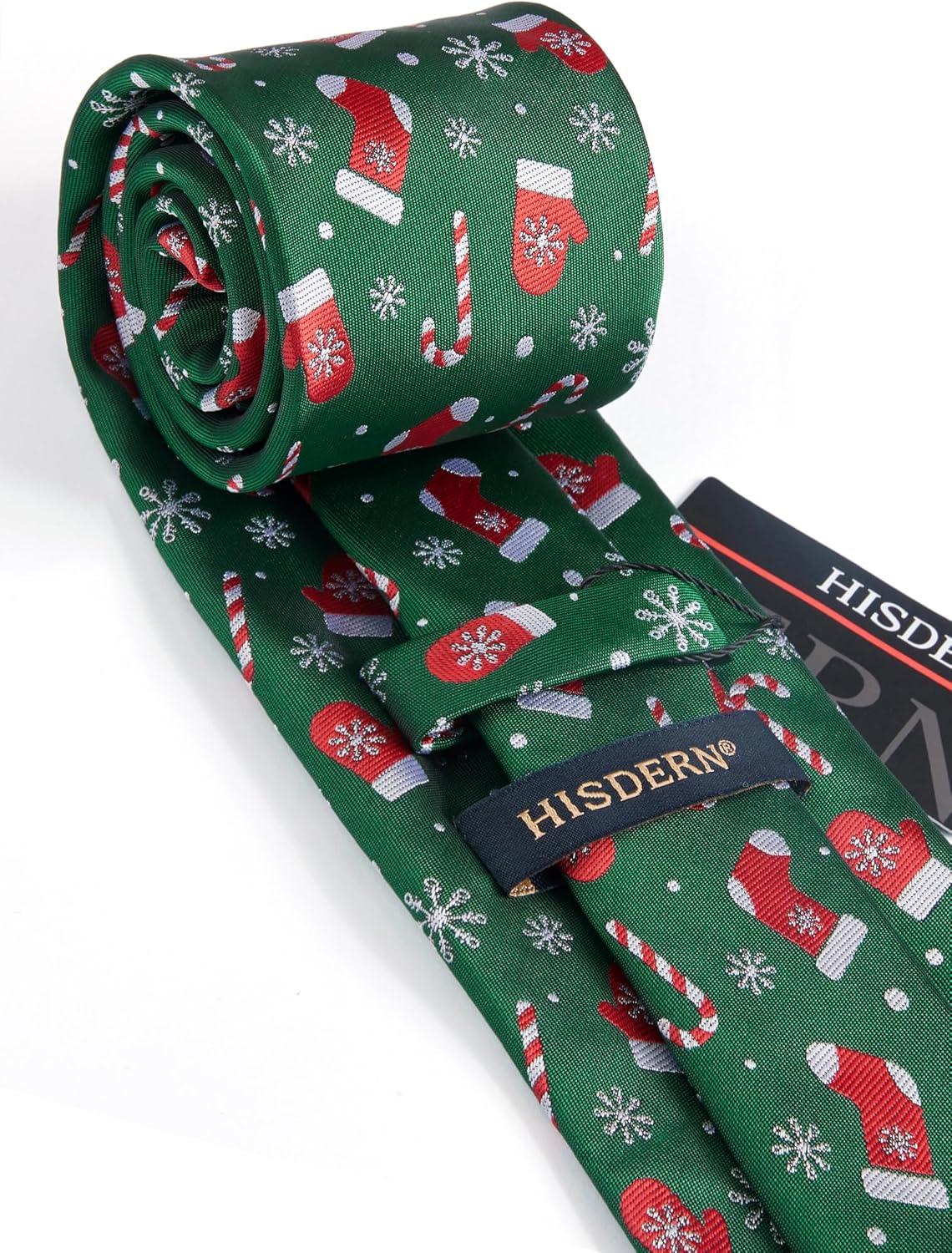 HISDERN Christmas Ties for Men Holiday Festival Funny Tie and Pocket Square Set Vacation Xmas Party Necktie Handkerchief(A-6 Green/Sock)