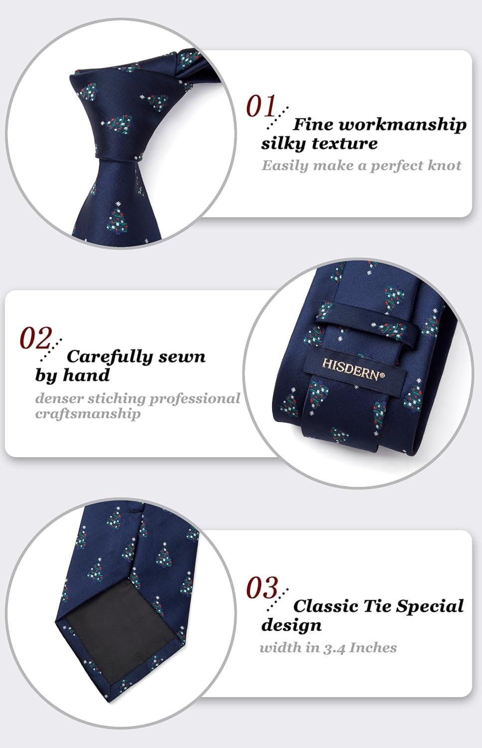 imageHISDERN Christmas Ties for Men Holiday Festival Funny Tie and Pocket Square Set Vacation Xmas Party Necktie HandkerchiefC8 Navy  Gift