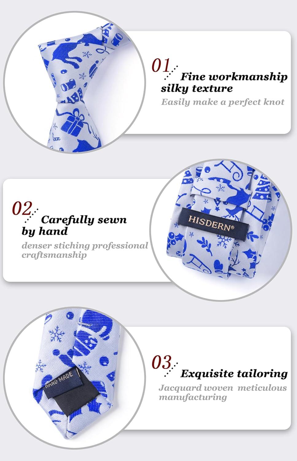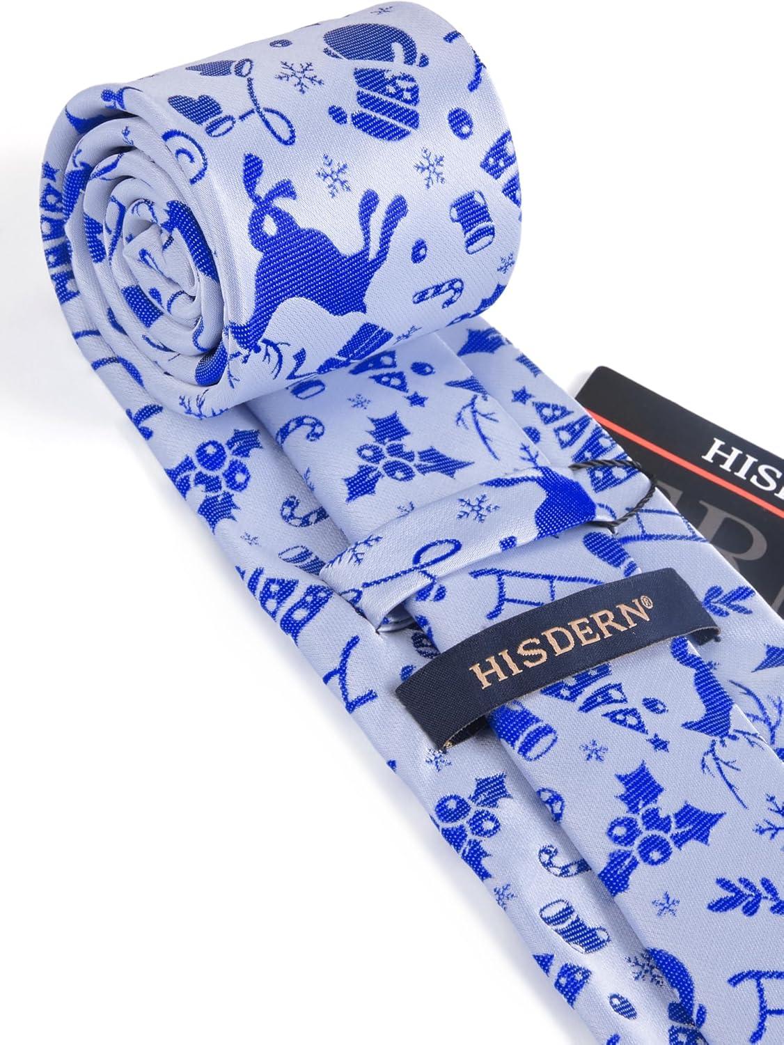 HISDERN Christmas Ties for Men Holiday Festival Funny Tie and Pocket Square Set Vacation Xmas Party Necktie Handkerchief(C-9 Blue / Striped)