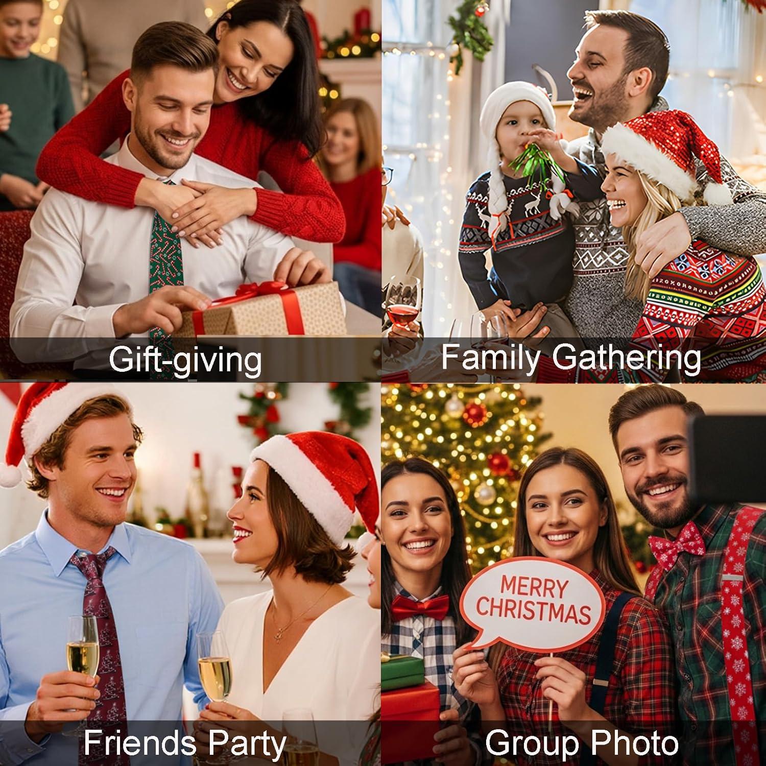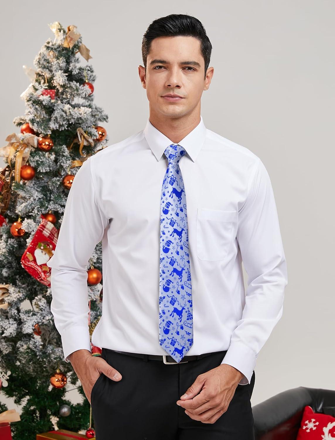 HISDERN Christmas Ties for Men Holiday Festival Funny Tie and Pocket Square Set Vacation Xmas Party Necktie Handkerchief(C-8 Navy / Gift)