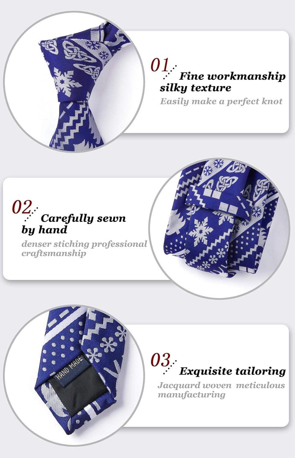 HISDERN Christmas Ties for Men Holiday Festival Funny Tie and Pocket Square Set Vacation Xmas Party Necktie Handkerchief(C-9 Blue / Striped)
