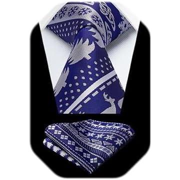 imageHISDERN Christmas Ties for Men Holiday Festival Funny Tie and Pocket Square Set Vacation Xmas Party Necktie HandkerchiefC9 Blue  Reindeer