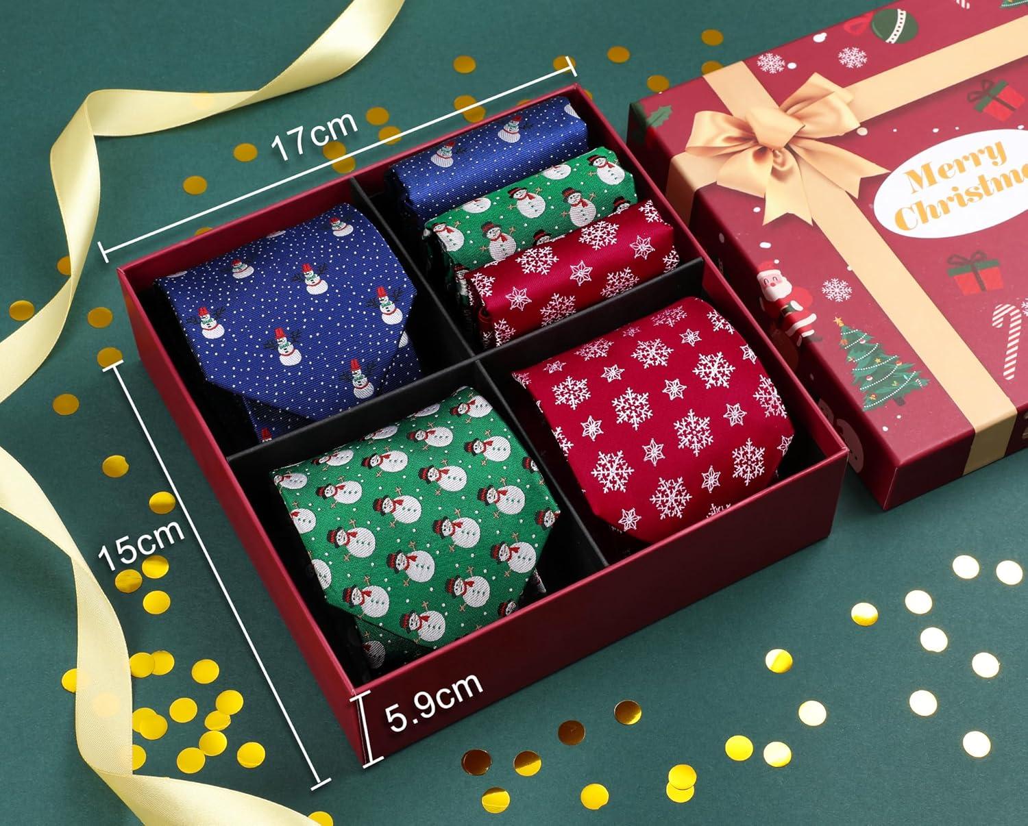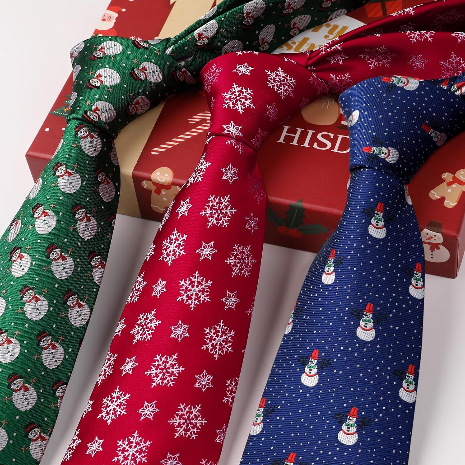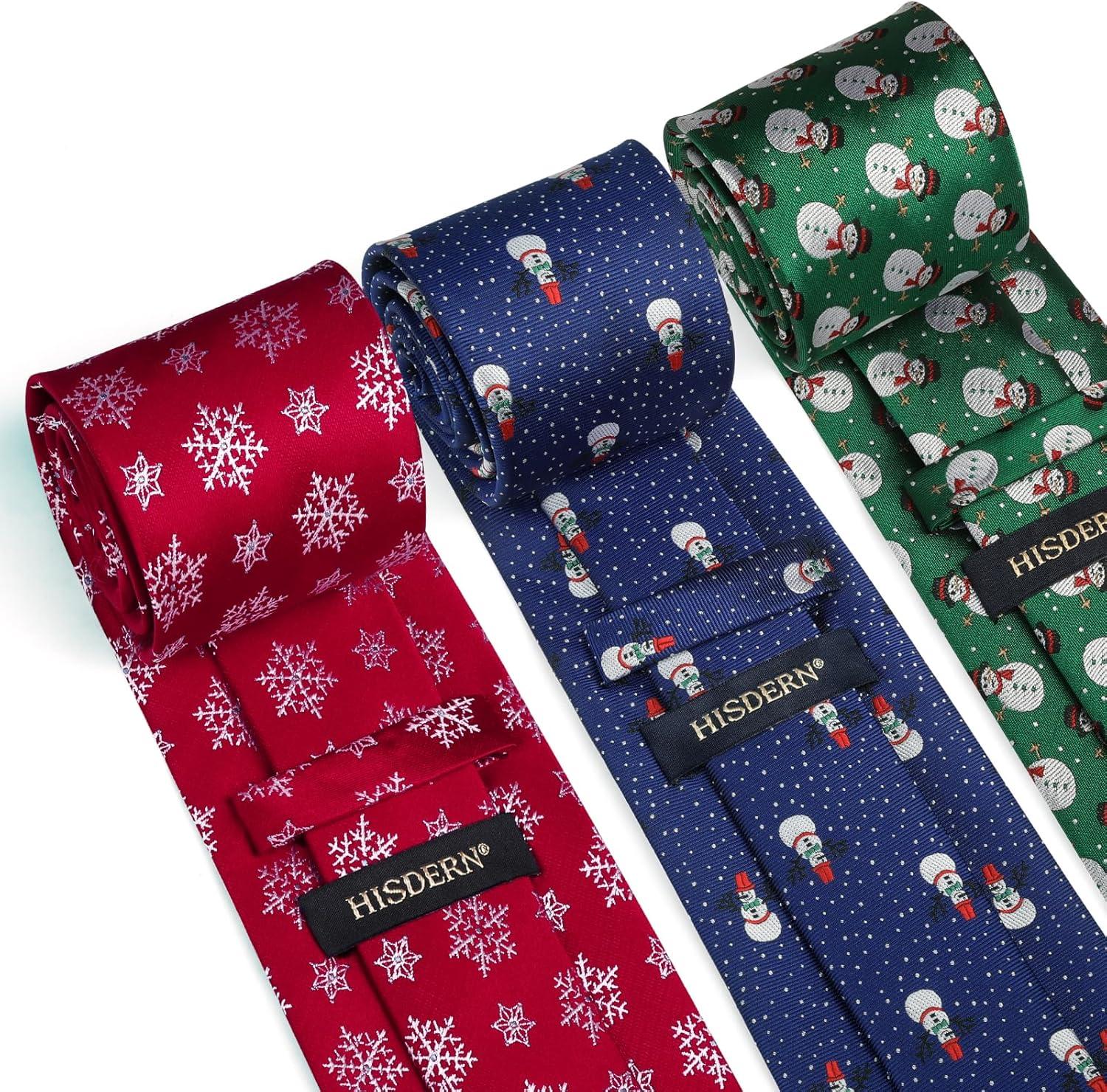 HISDERN Christmas Ties for Men Holiday Tie and Pocket Square Set Lot 3 PCS Tie Pack Gift Box Neckties & Handkerchief(T5-s1)