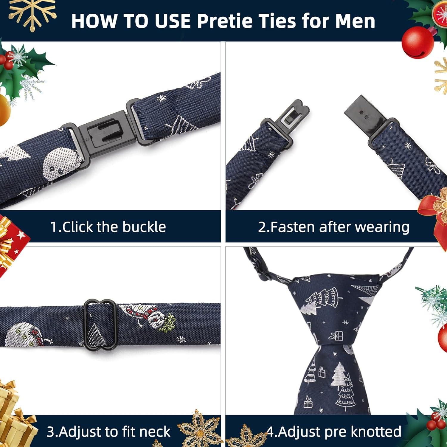 imageHISDERN Christmas Ties for Men Pretied Mens Holiday Silk Tie and Pocket Square Cufflinks Set Xmas Festive Funny NecktieFestive Bluexmas Collage