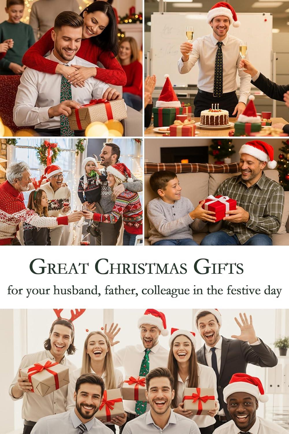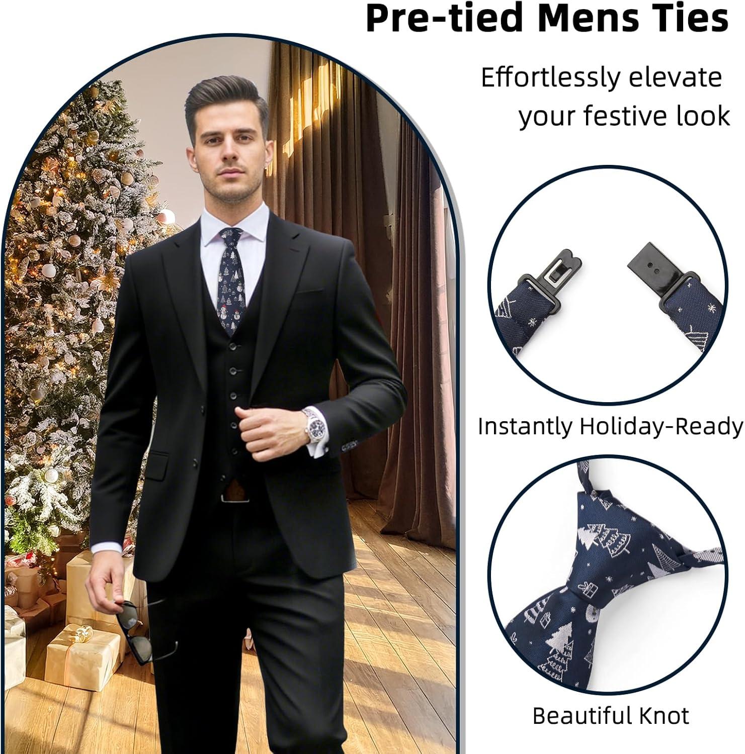 HISDERN Christmas Ties for Men Pre-tied Mens Holiday Silk Tie and Pocket Square Cufflinks Set Xmas Festive Funny Necktie(Festive Blue-xmas Collage)