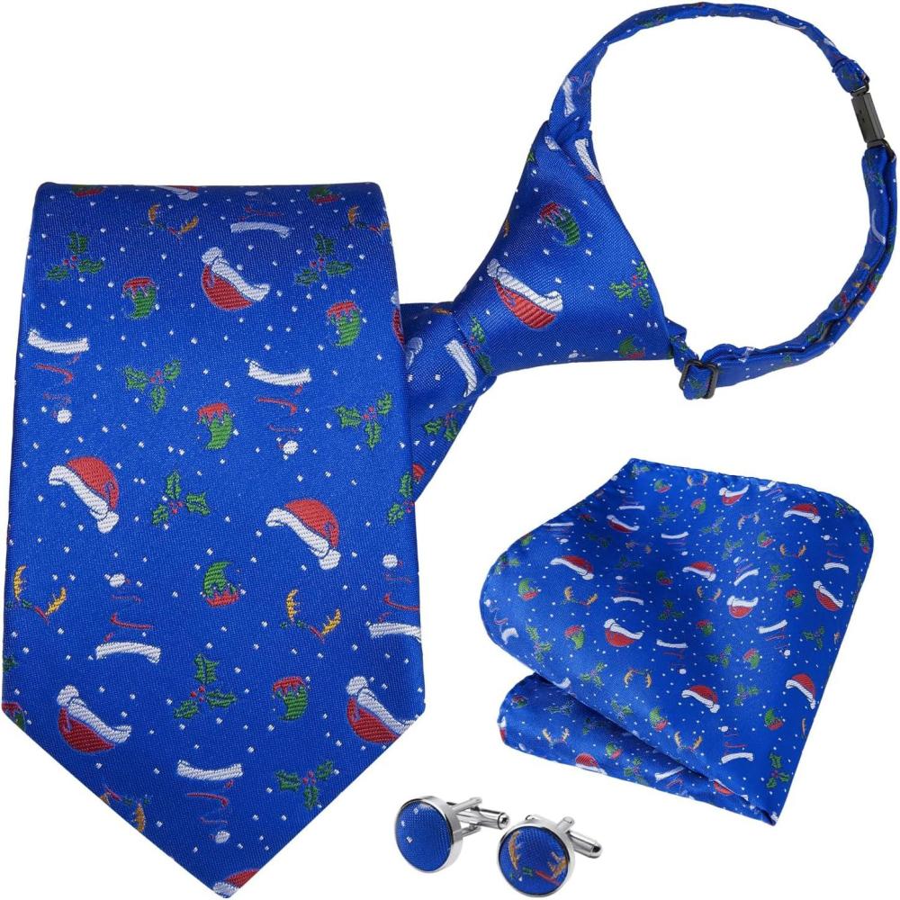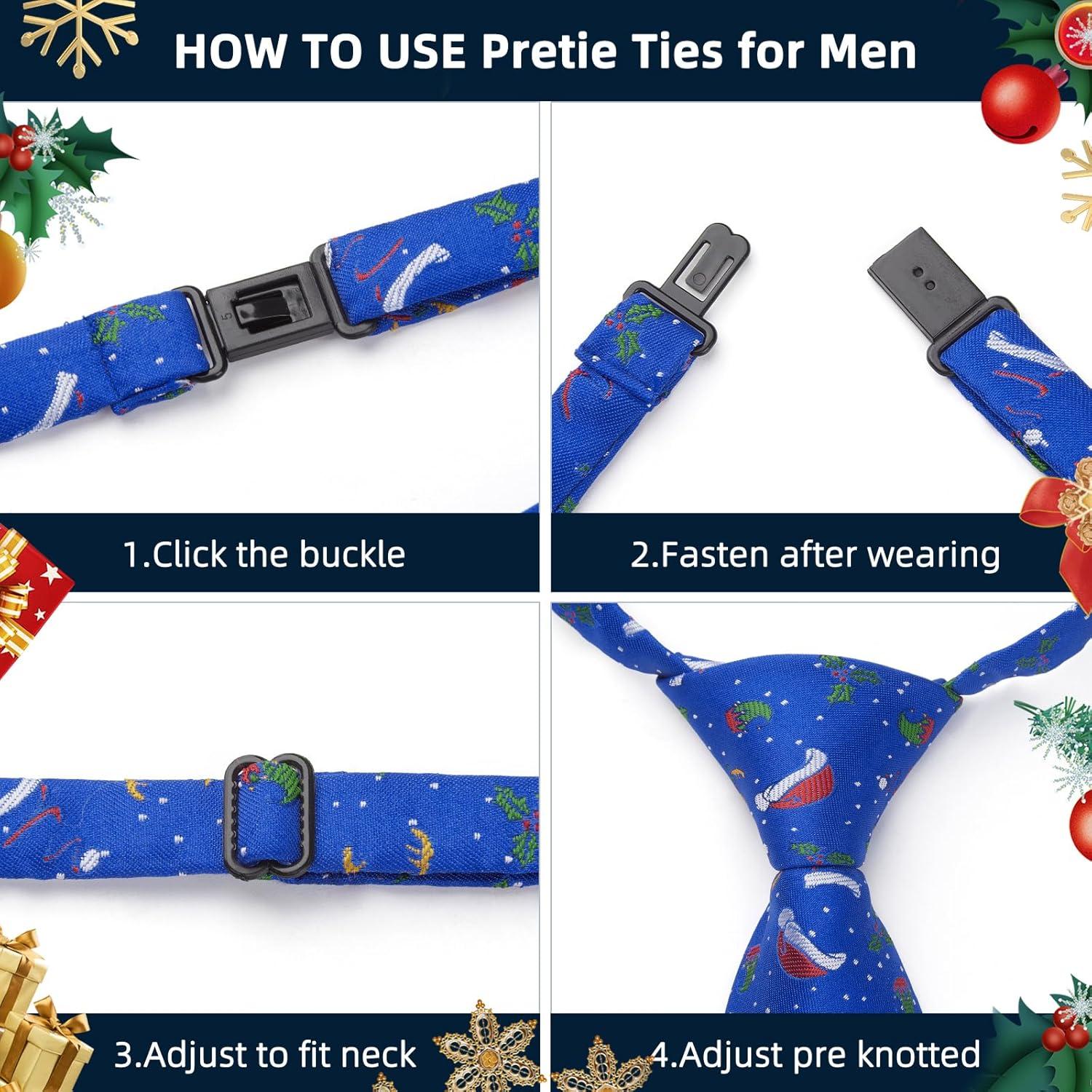 imageHISDERN Christmas Ties for Men Pretied Mens Holiday Silk Tie and Pocket Square Cufflinks Set Xmas Festive Funny NecktieFestive Bluexmas Collage
