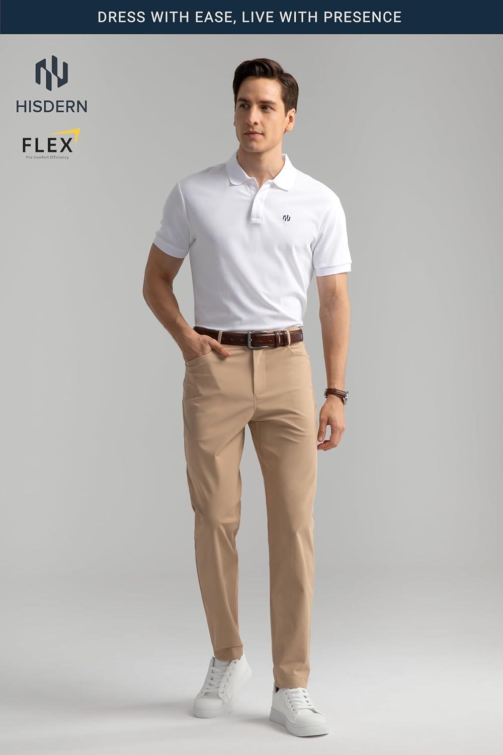 HISDERN Flex 503 Men’s Slim Fit Golf Pants 30″/32″/34″ No Iron Stretch Quick Dry for Business Work Casual with 5 Pocket(Khaki)