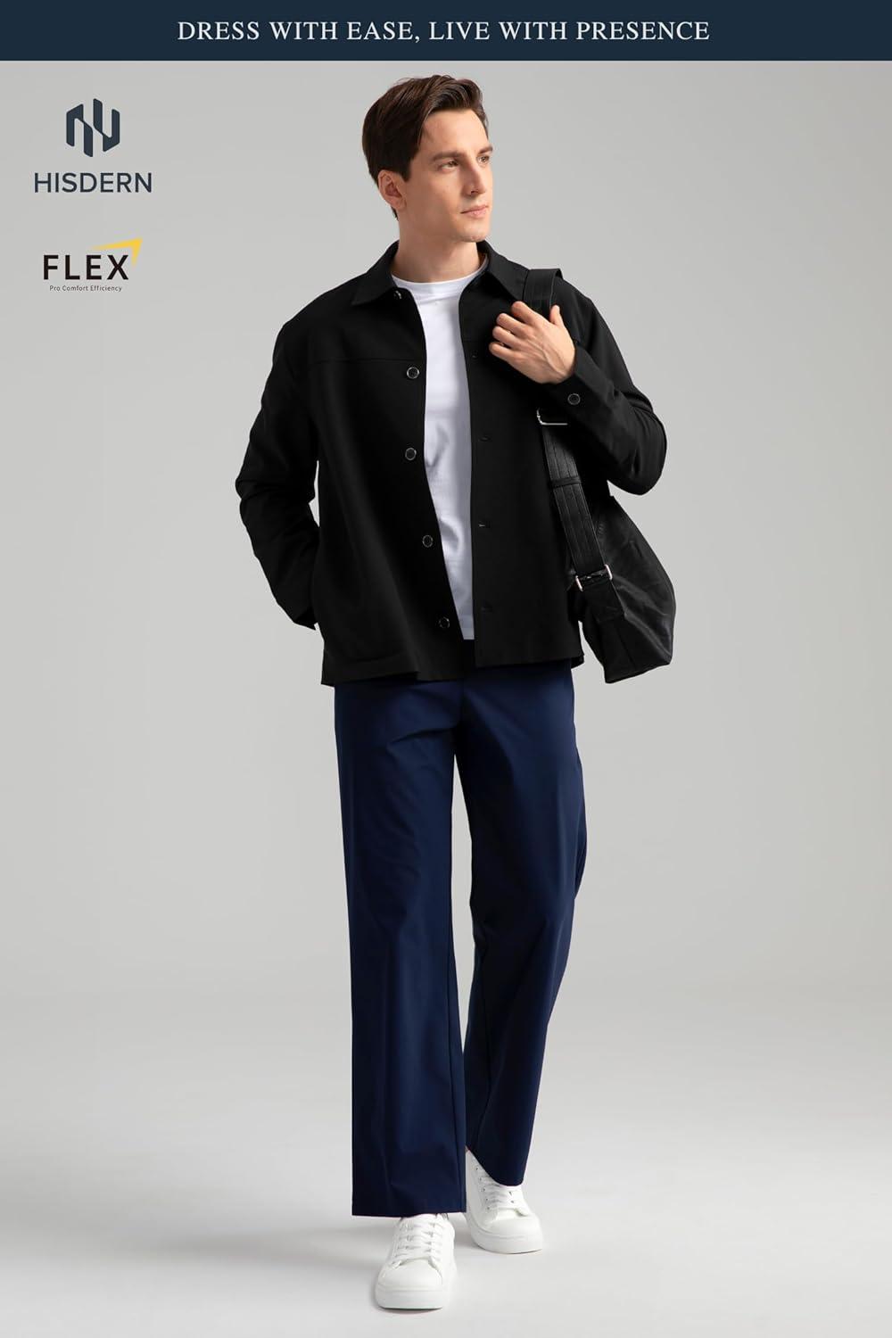 HISDERN FLEX 531 Men’s Button Down Shirt Jacket Comfy Lightweight Design for Business Casual and Social Events with Pockets(Navy Blue)