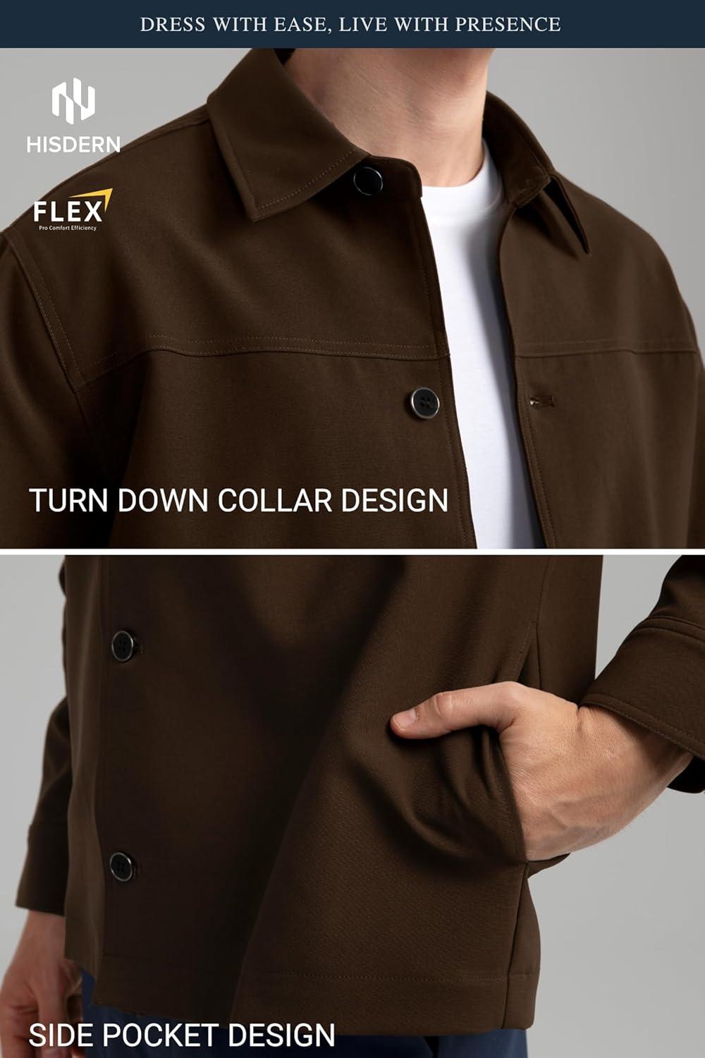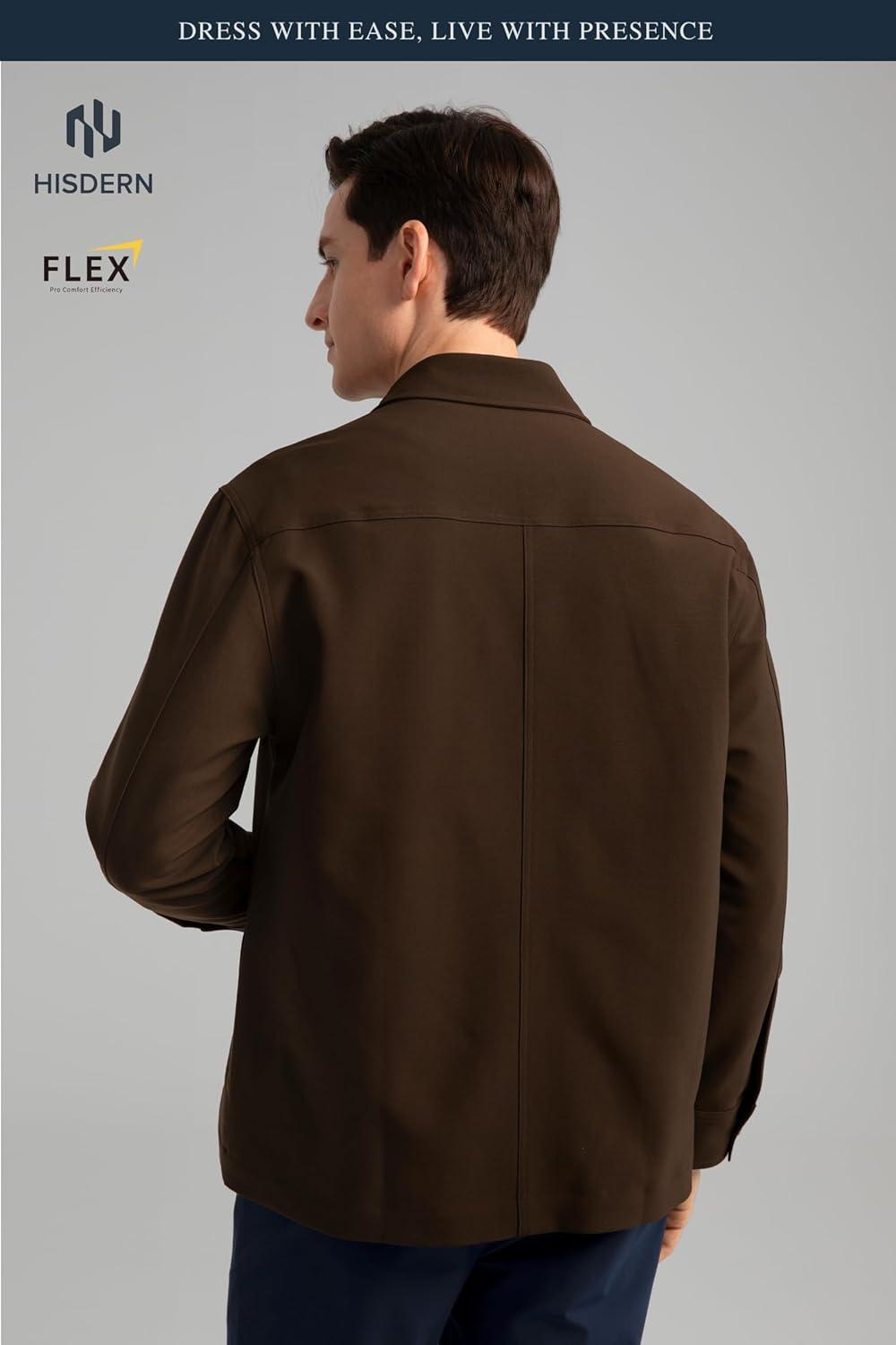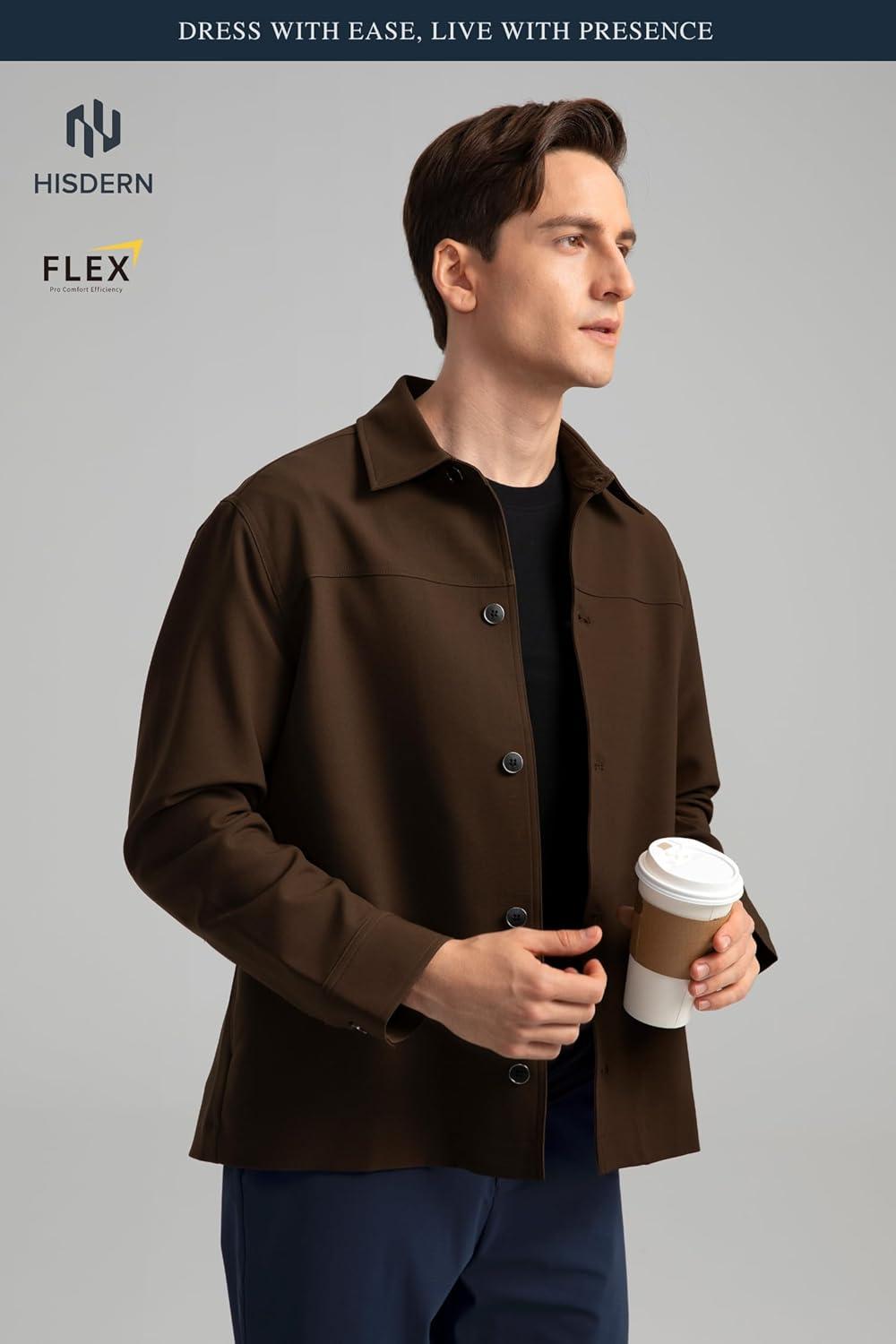 HISDERN FLEX 531 Men’s Button Down Shirt Jacket Comfy Lightweight Design for Business Casual and Social Events with Pockets(Brown)