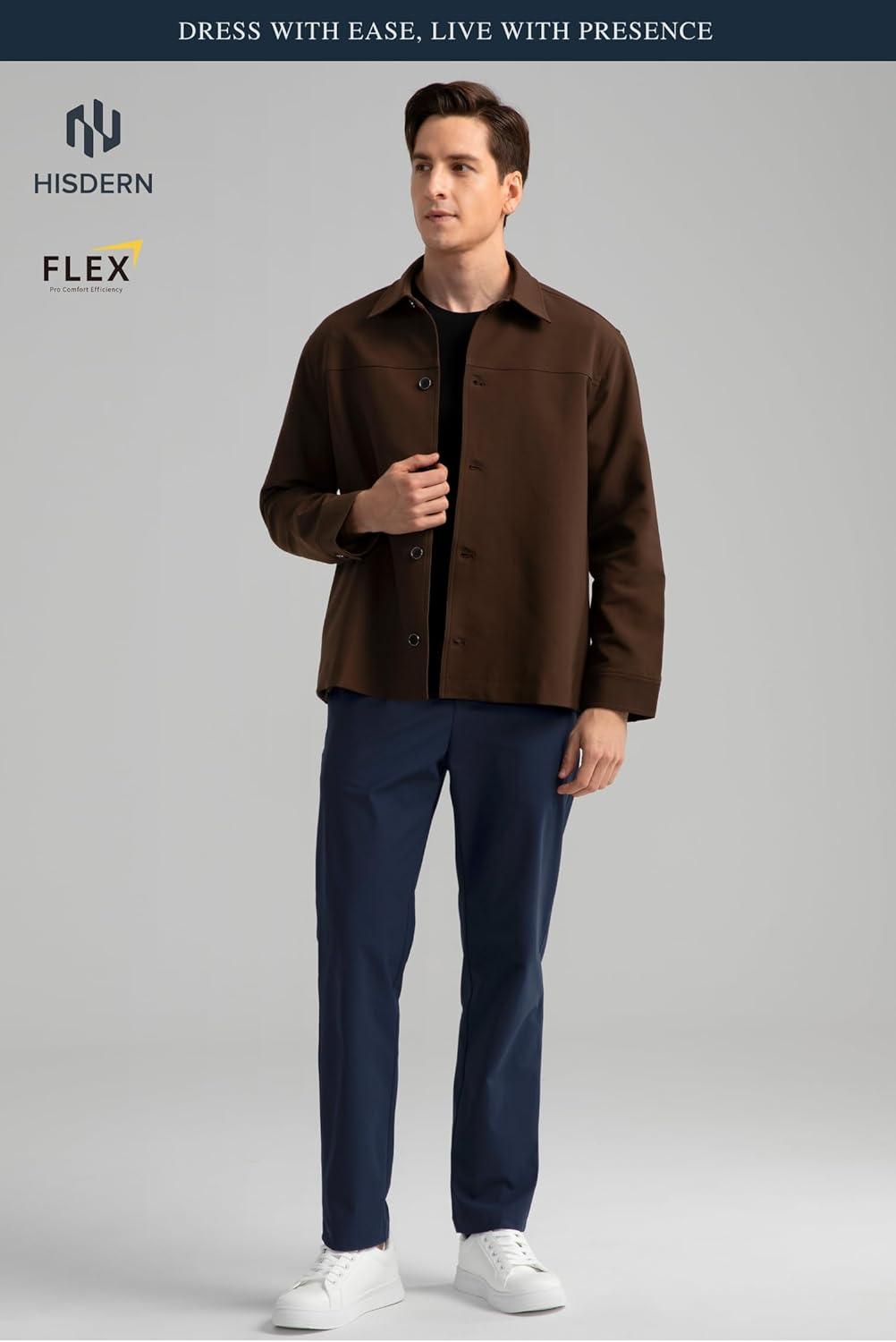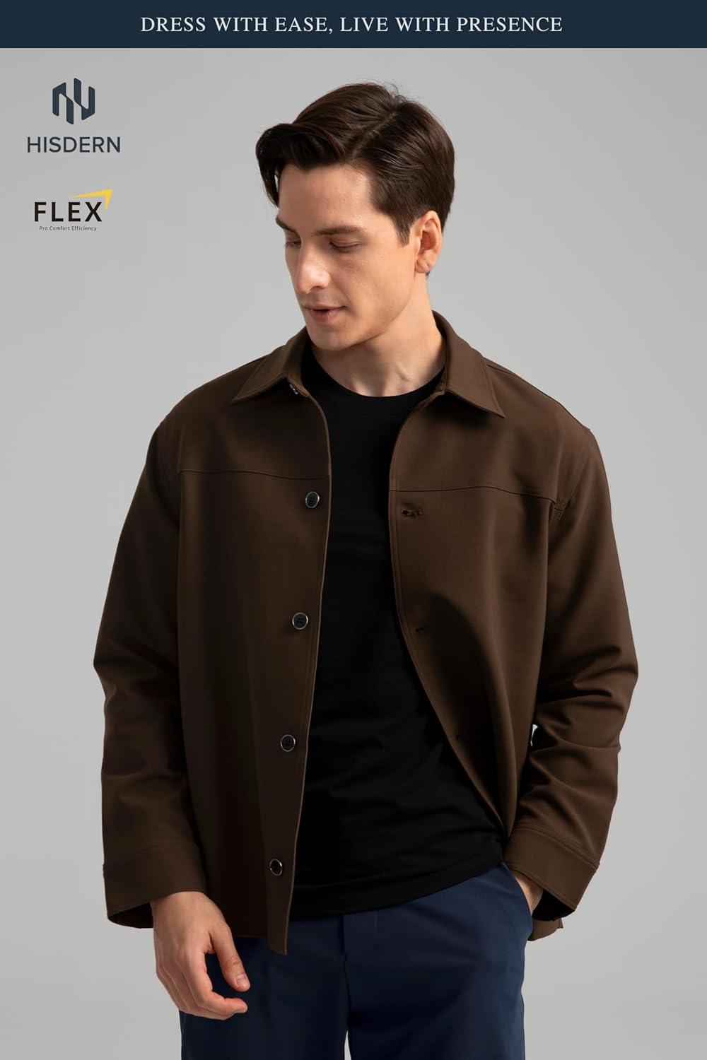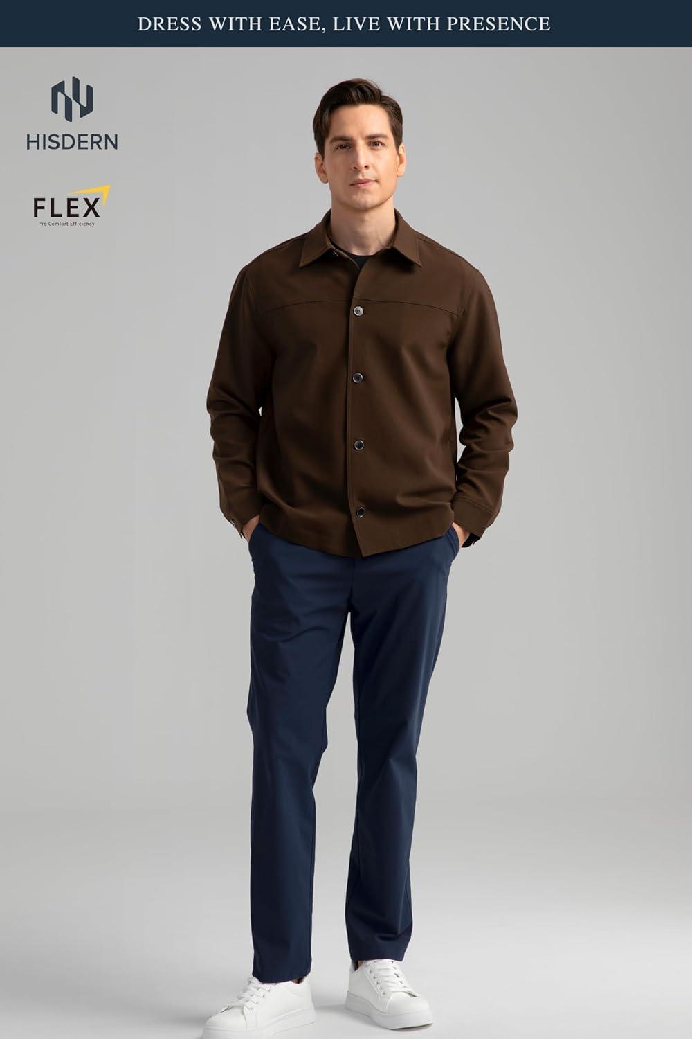 HISDERN FLEX 531 Men’s Button Down Shirt Jacket Comfy Lightweight Design for Business Casual and Social Events with Pockets(Brown)