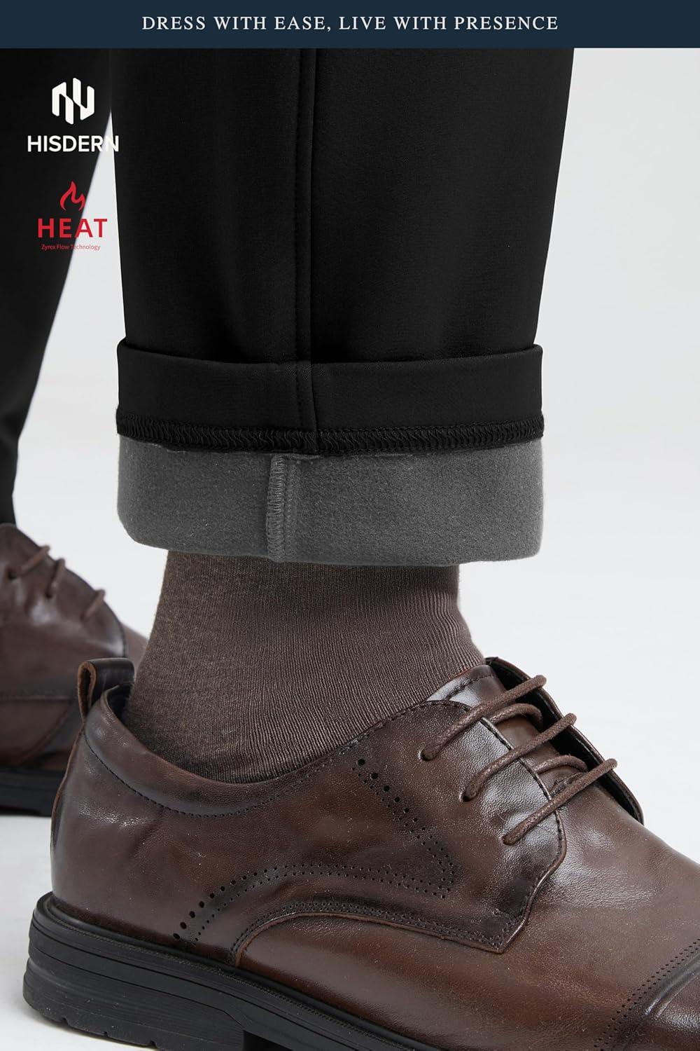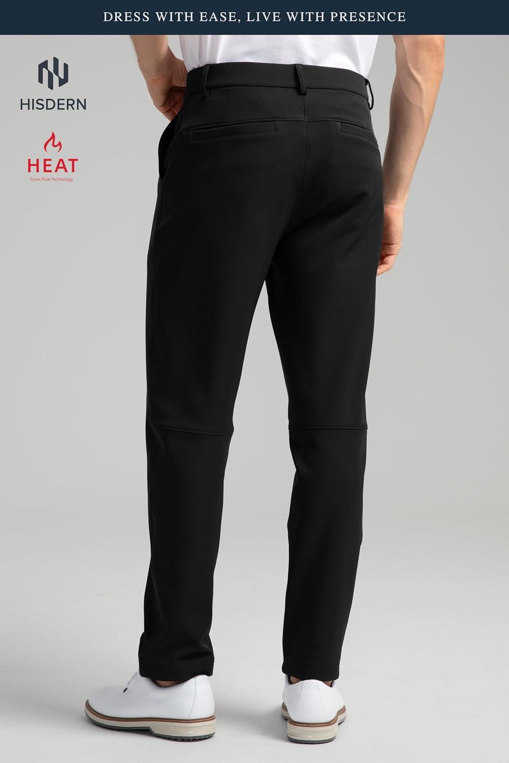 HISDERN Heat 701 Men’s Thermal Golf Pants Stretch 30″/32″ No Iron Comfy for Winter Business Casual with Utility Pocket(Black)