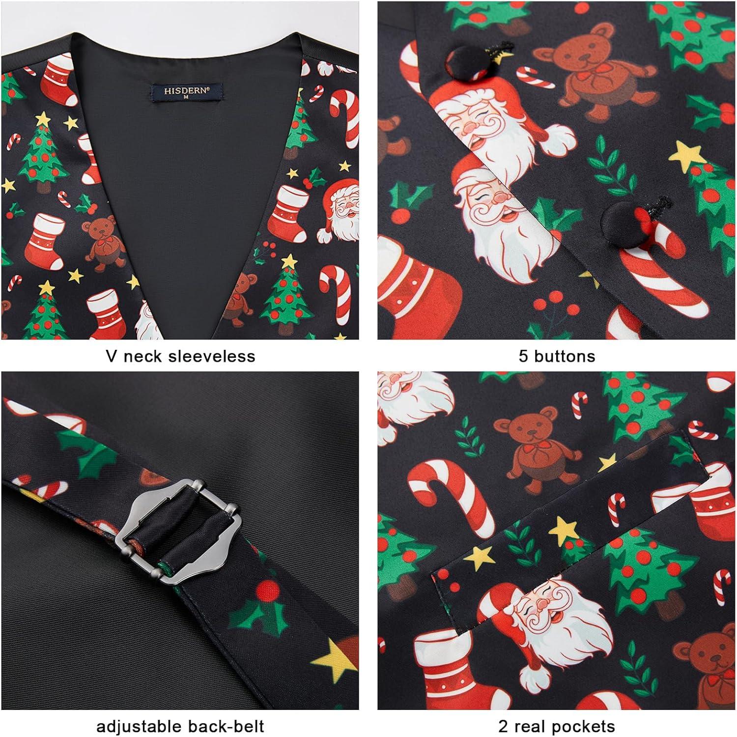 Get your hands on our newest HISDERN Mens Christmas Suit Vest Funny Holiday Dress Vests Tie and Pocket Square Set for Men Xmas Festival Party(Black Santa) and enjoy a limited-time discount offer.