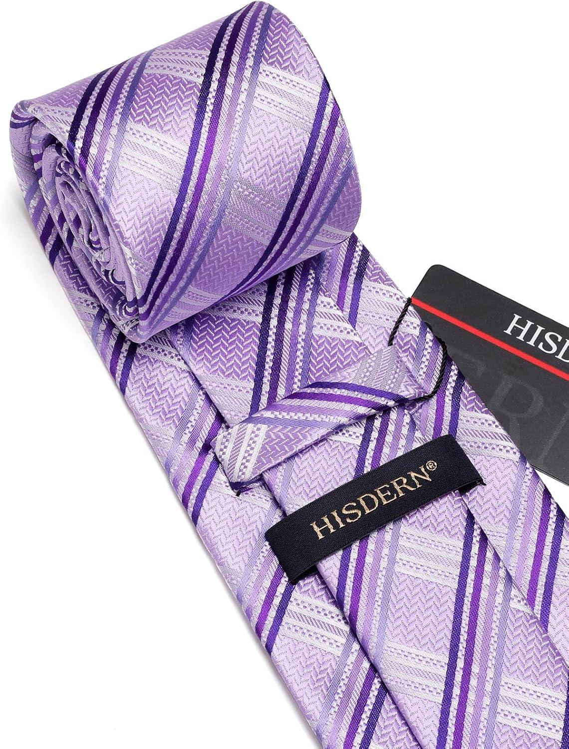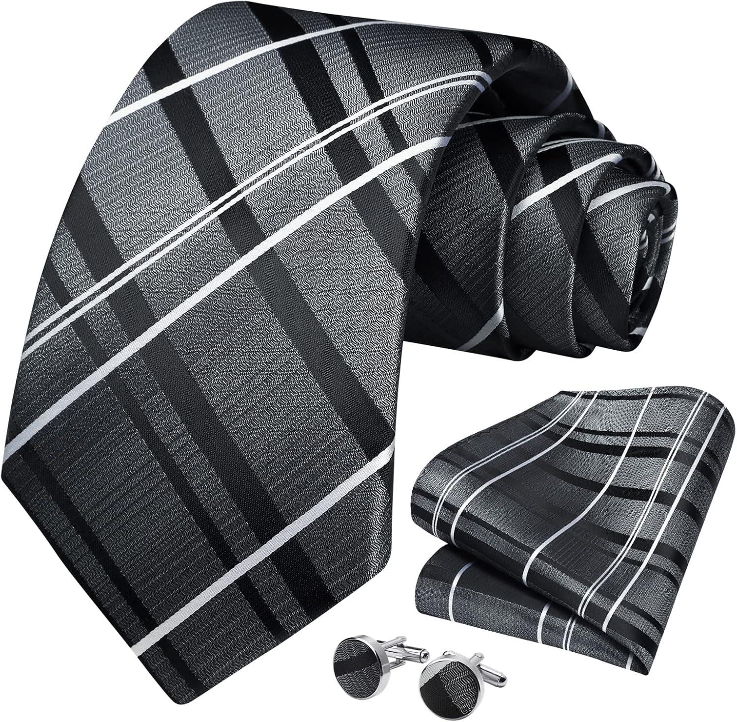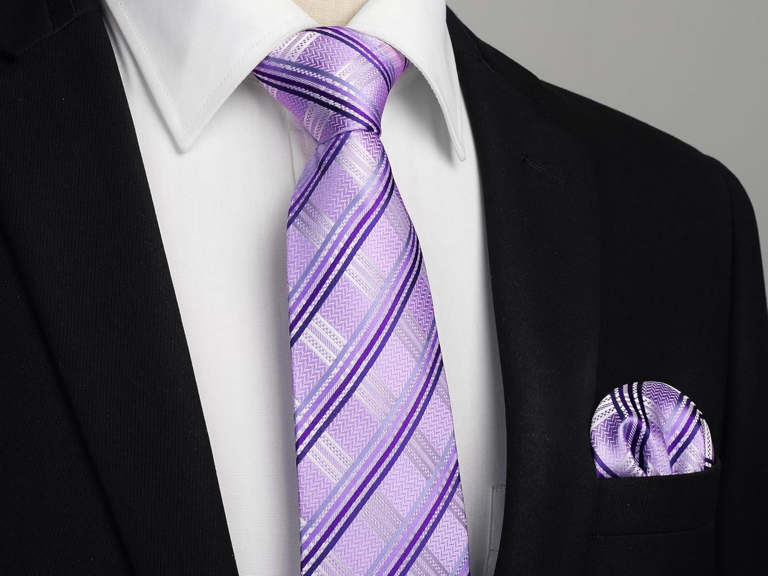 mens ties for men black gray stripe ties formal silk necktie pocket square cufflinks set classic business purple neckties handkerchief wedding dress suit party corbatas para hombres elegantes Christmas gift father husband groom prom