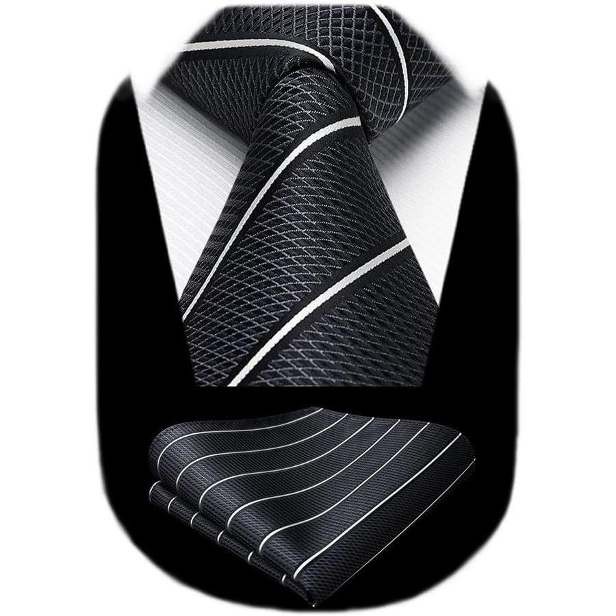 HISDERN Mens Striped Ties Classic Silk Woven Tie and Pocket Square Set Formal Business Necktie Handkerchief for Wedding(Black-1)