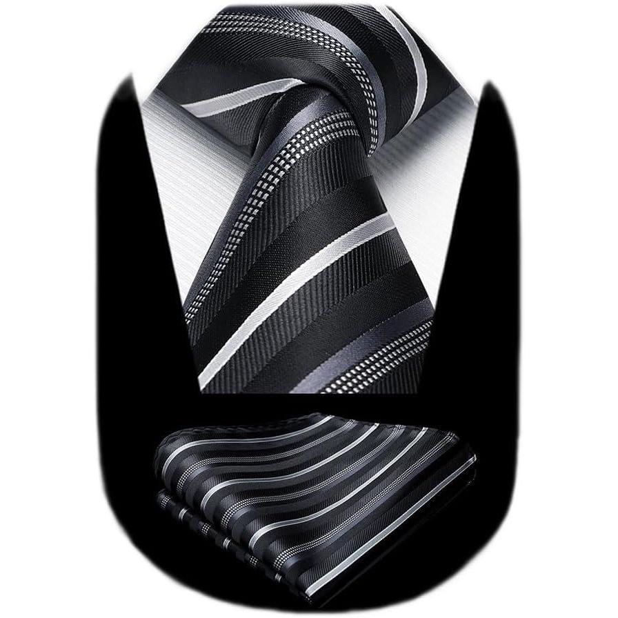 HISDERN Mens Striped Ties Classic Silk Woven Tie and Pocket Square Set Formal Business Necktie Handkerchief for Wedding(Black-1)