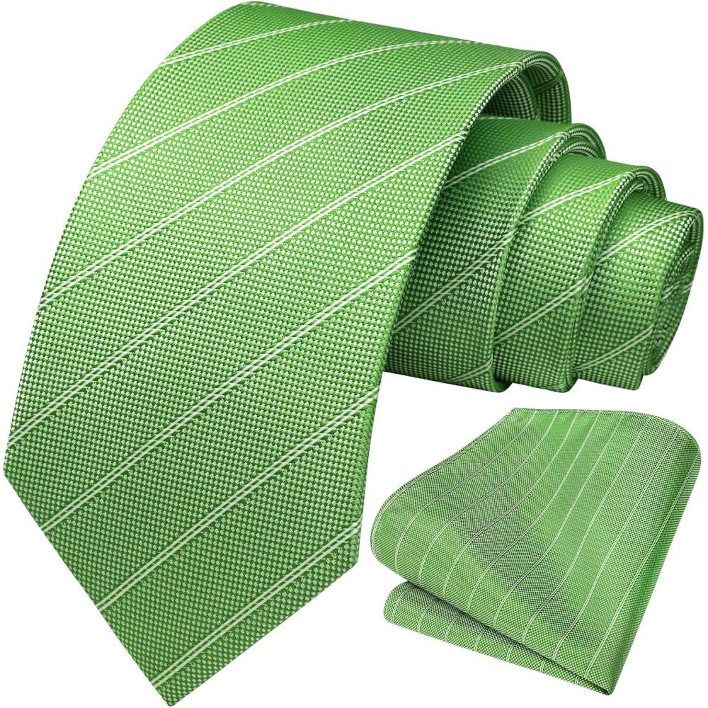HISDERN Mens Striped Ties Classic Silk Woven Tie and Pocket Square Set Formal Business Necktie Handkerchief for Wedding(Green-1)