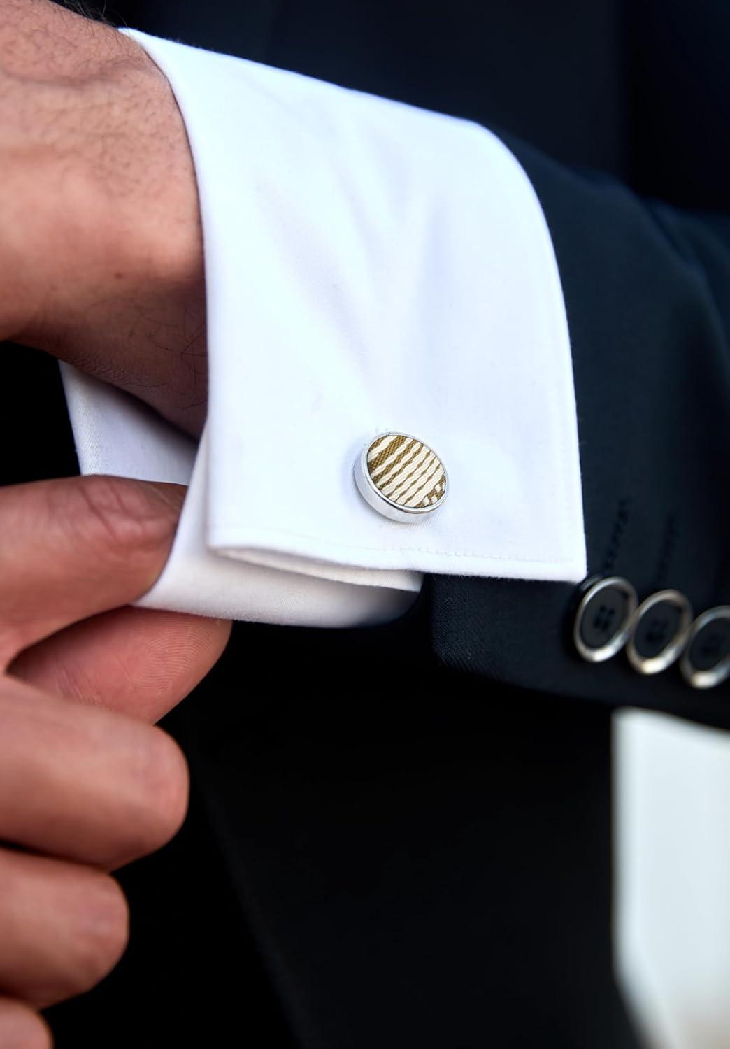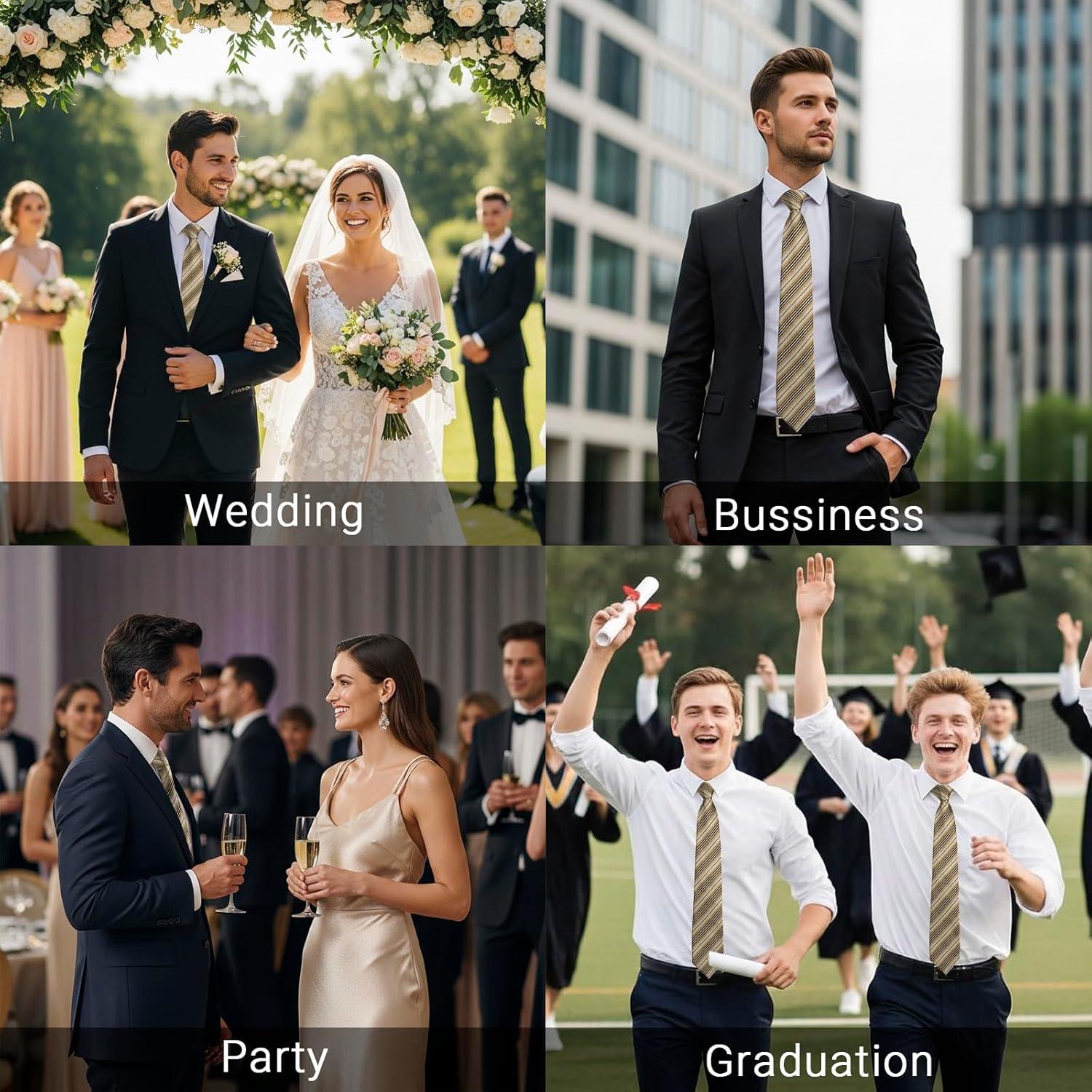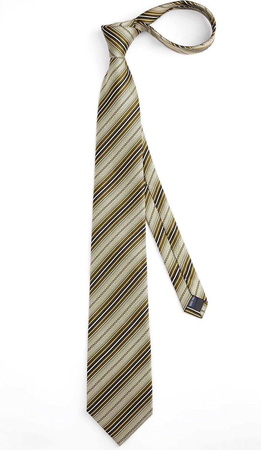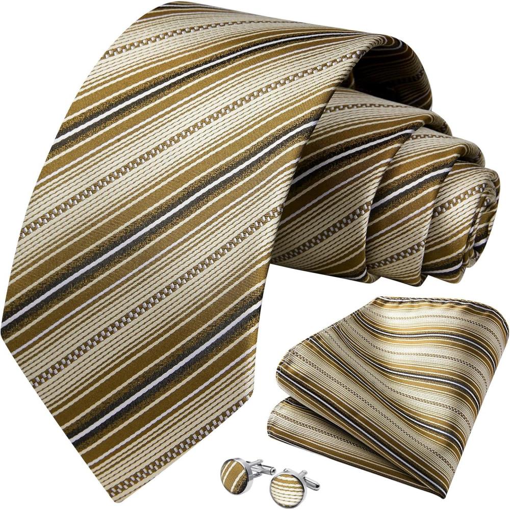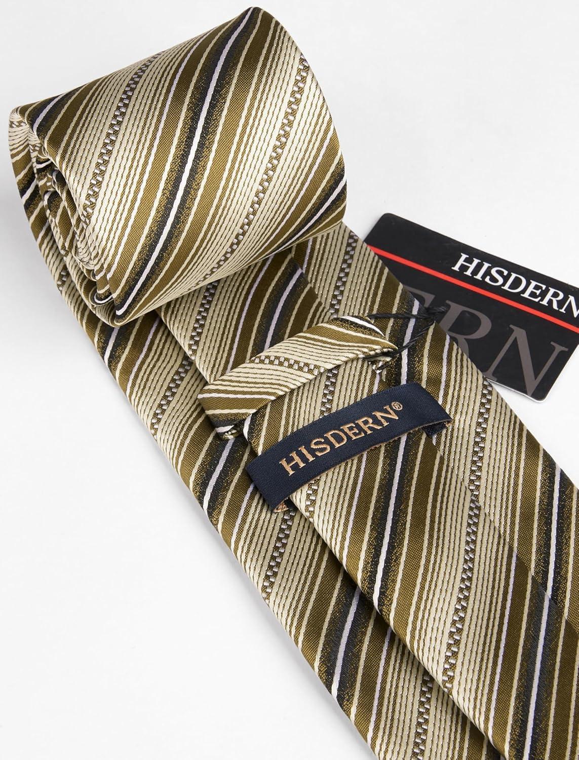 HISDERN Mens Tie Set Stripe Plaid Ties with Pocket Square Cufflinks Formal Business Silk Necktie Handkerchief for Men(Khaki)