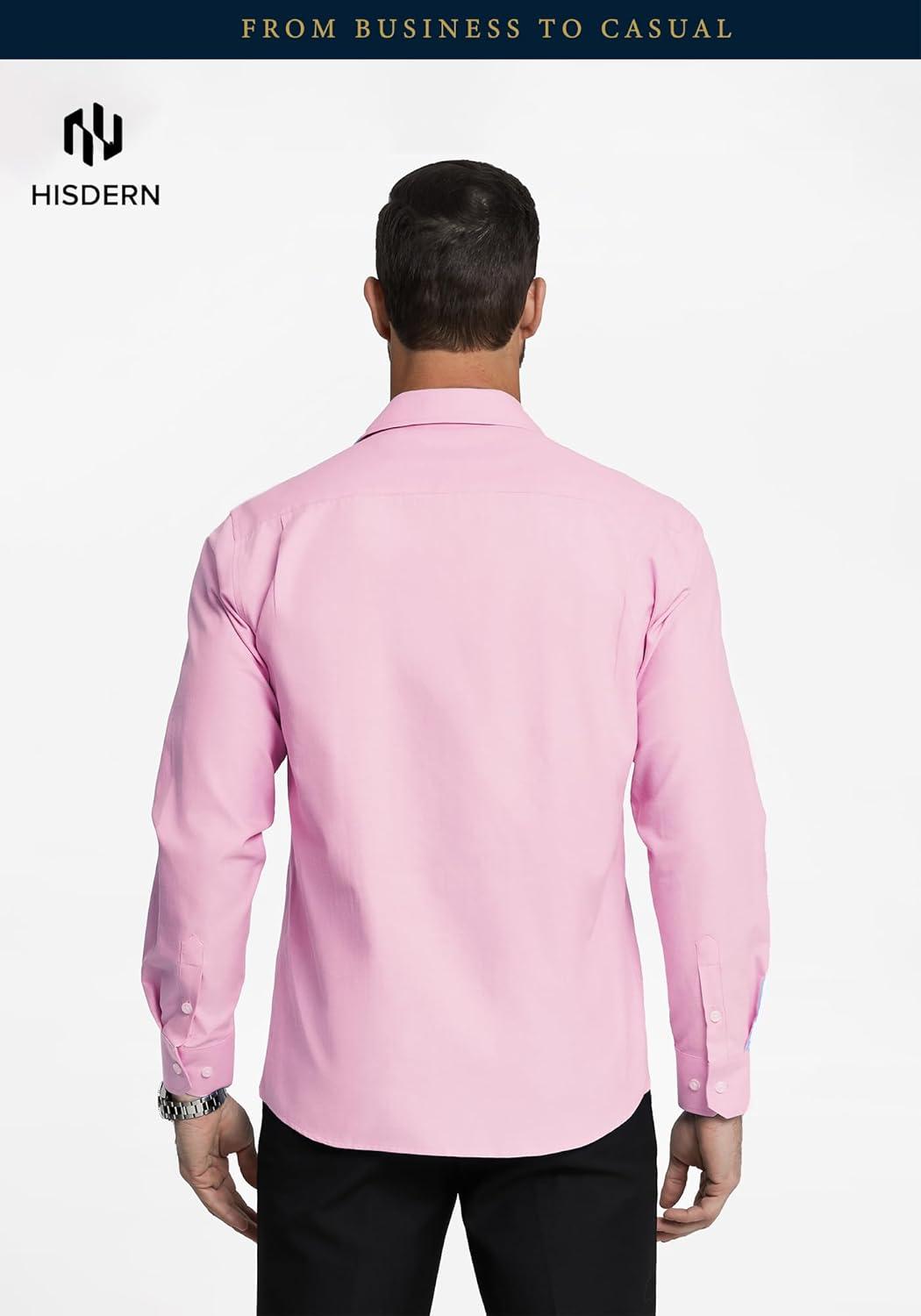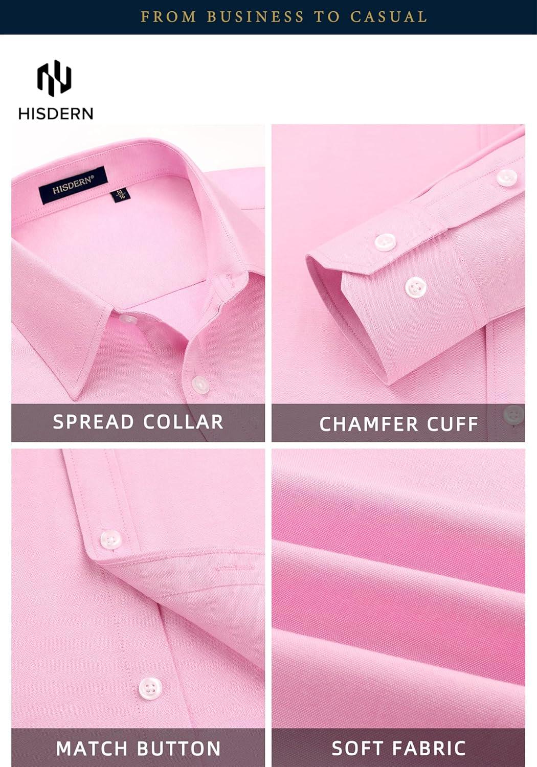 HISDERN Oxford 112 Men’s Long Sleeve Oxford Dress Shirt Button Down Collar Breathable Business Casual for Work Formal Wear(E-02-pink)