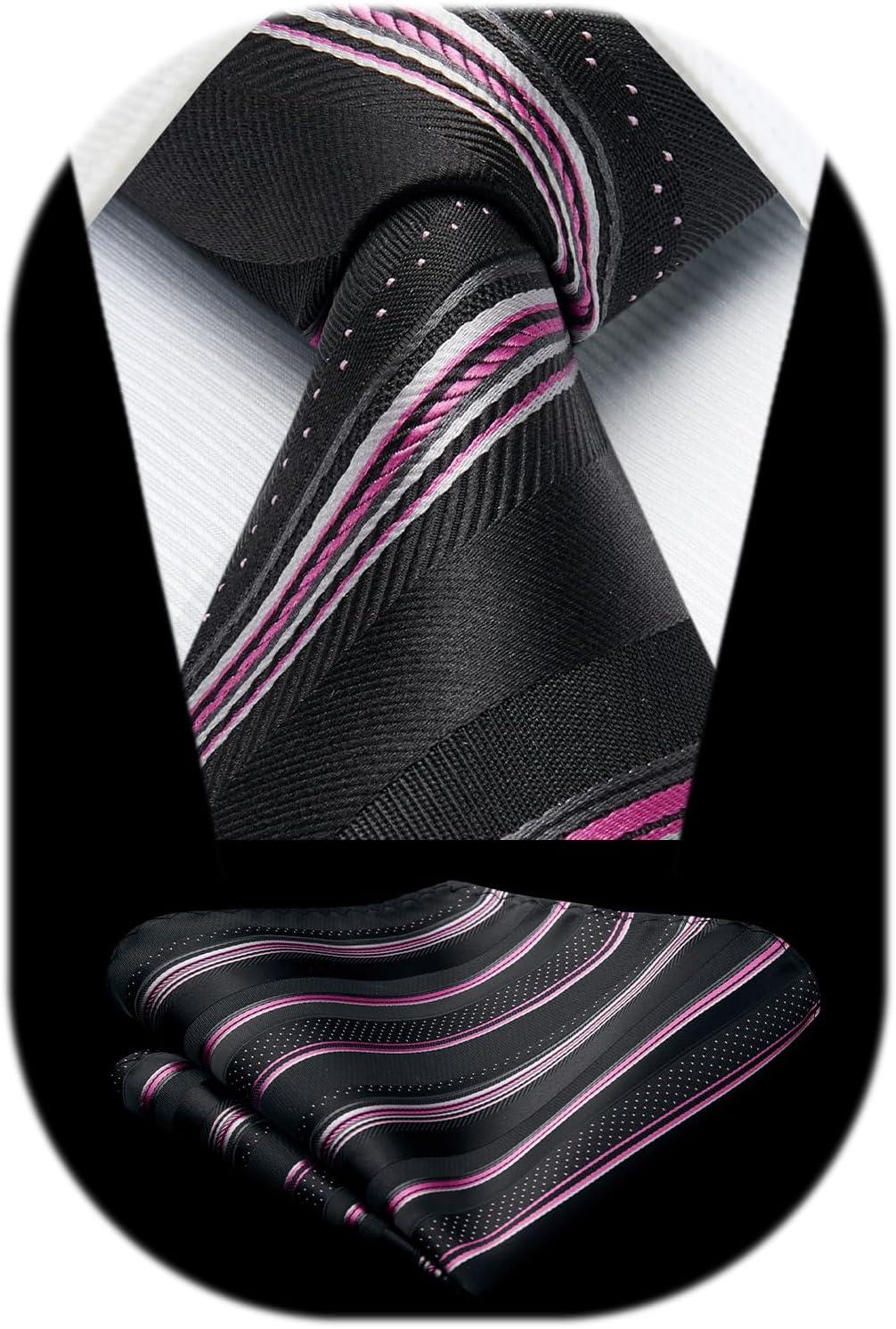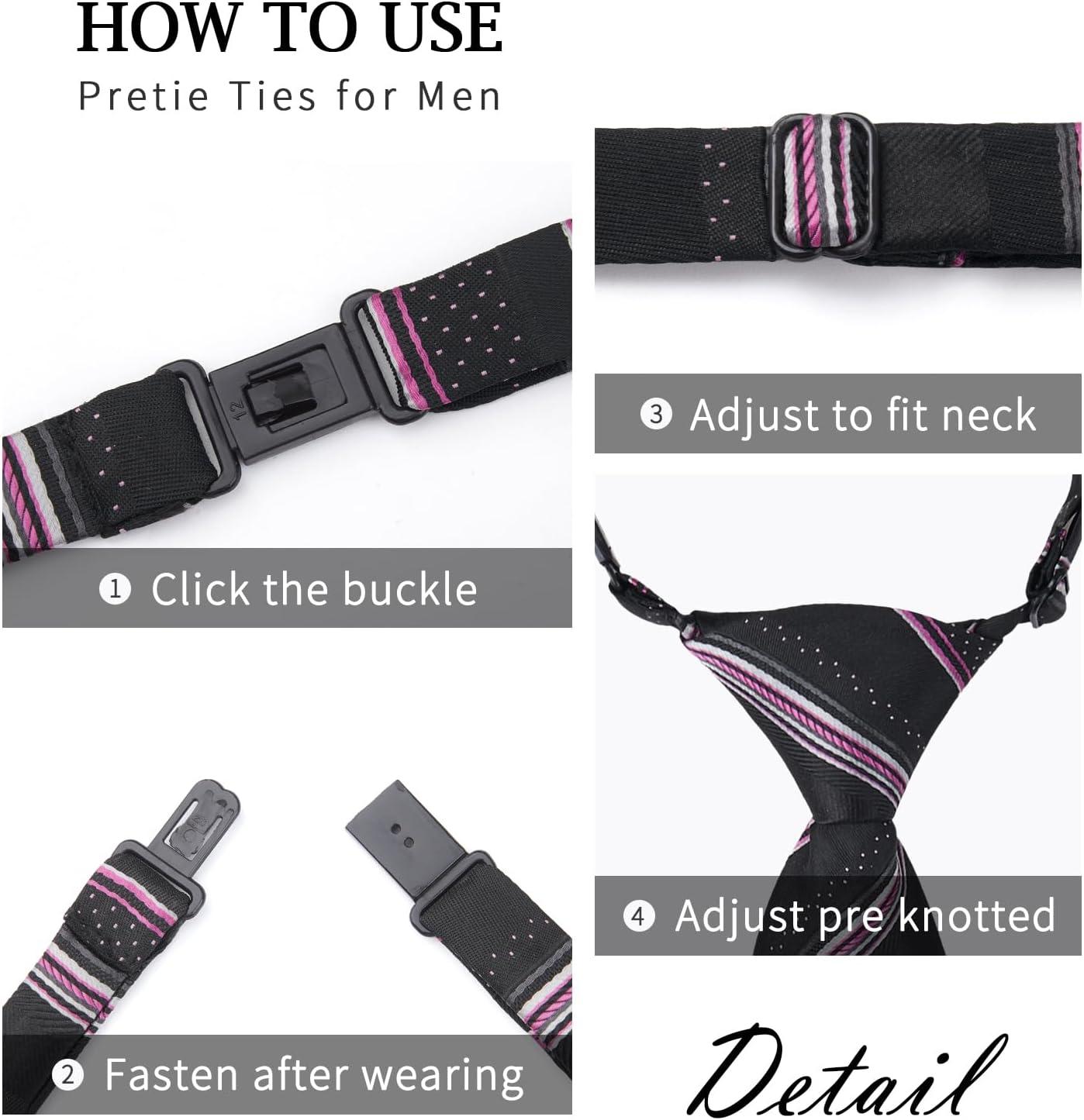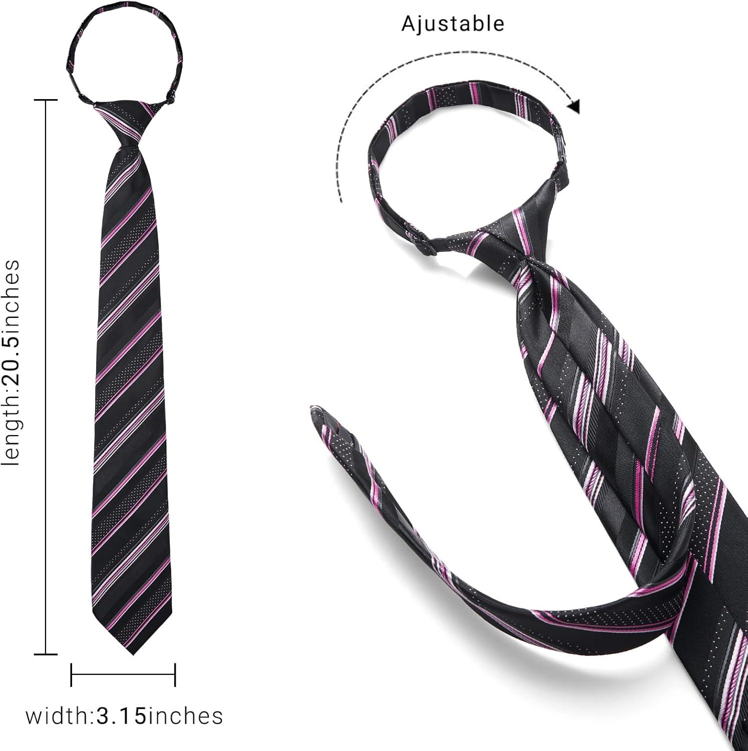 HISDERN Pre Tied Ties for Men Adjustable Mens Tie Classic Paisley Stripe Necktie and Pocket Square Set for Wedding Party(B-pink Striped)