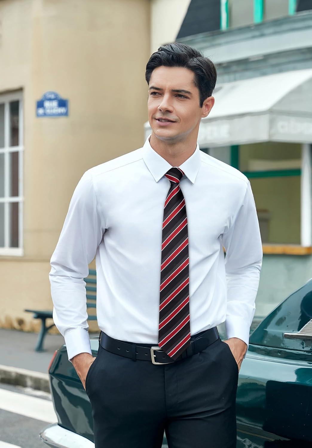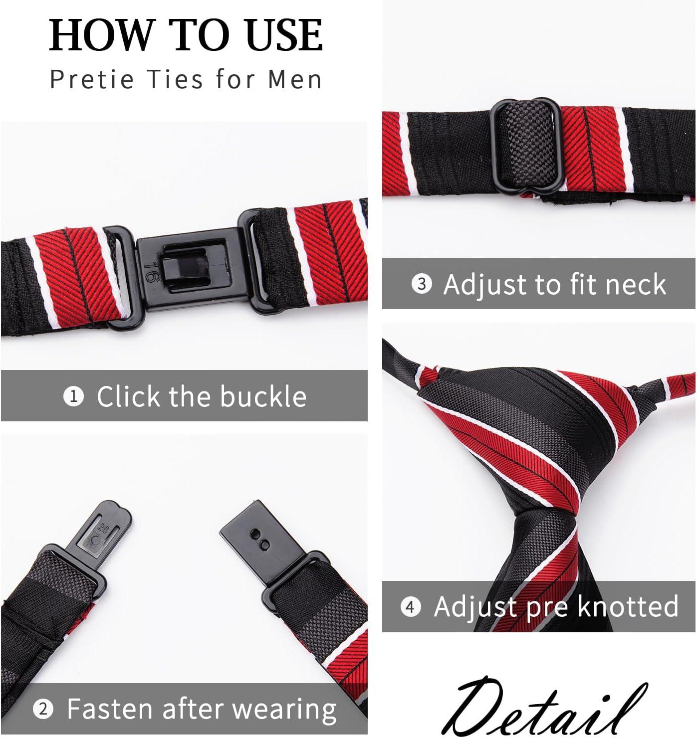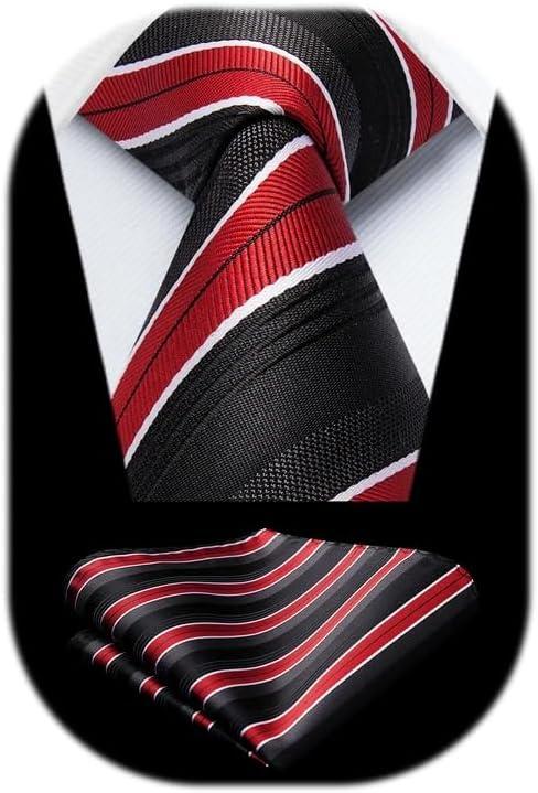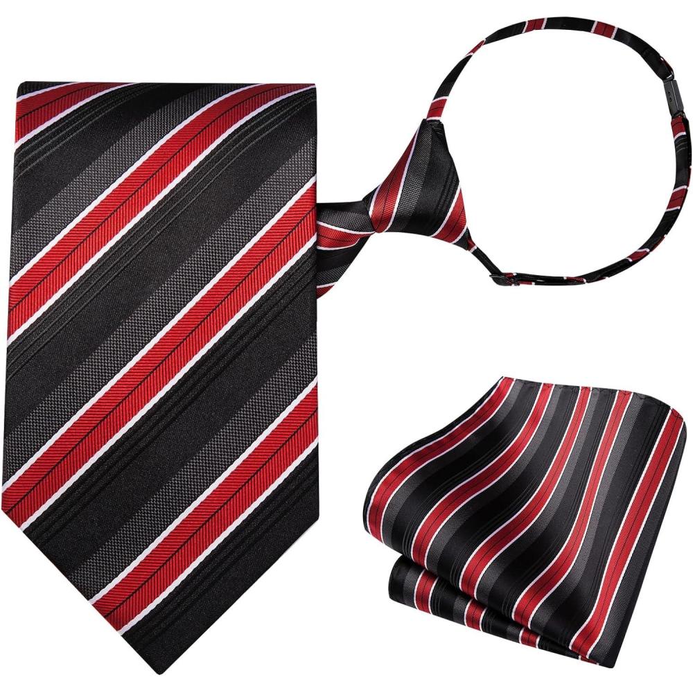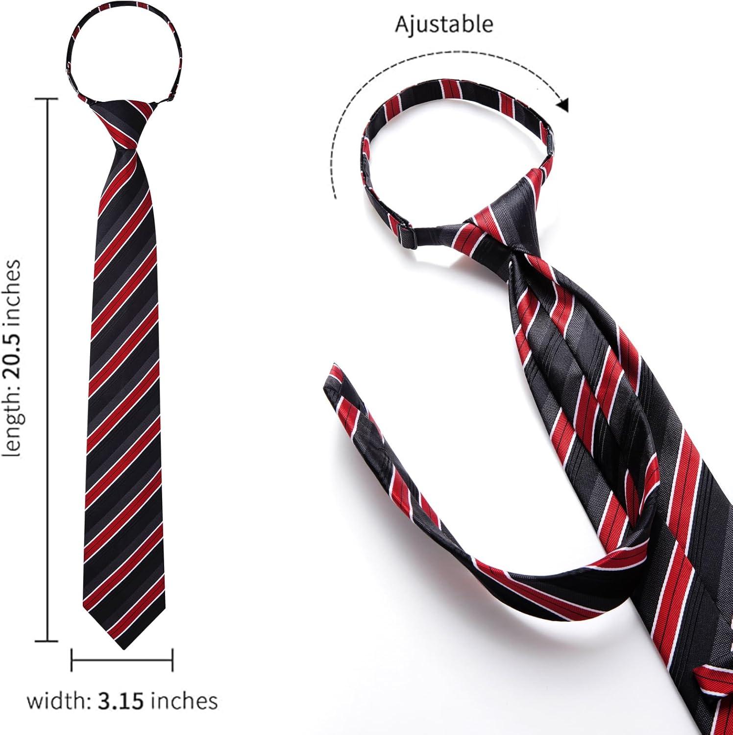 HISDERN Pre Tied Ties for Men Adjustable Mens Tie Classic Paisley Stripe Necktie and Pocket Square Set for Wedding Party(B-red Striped)