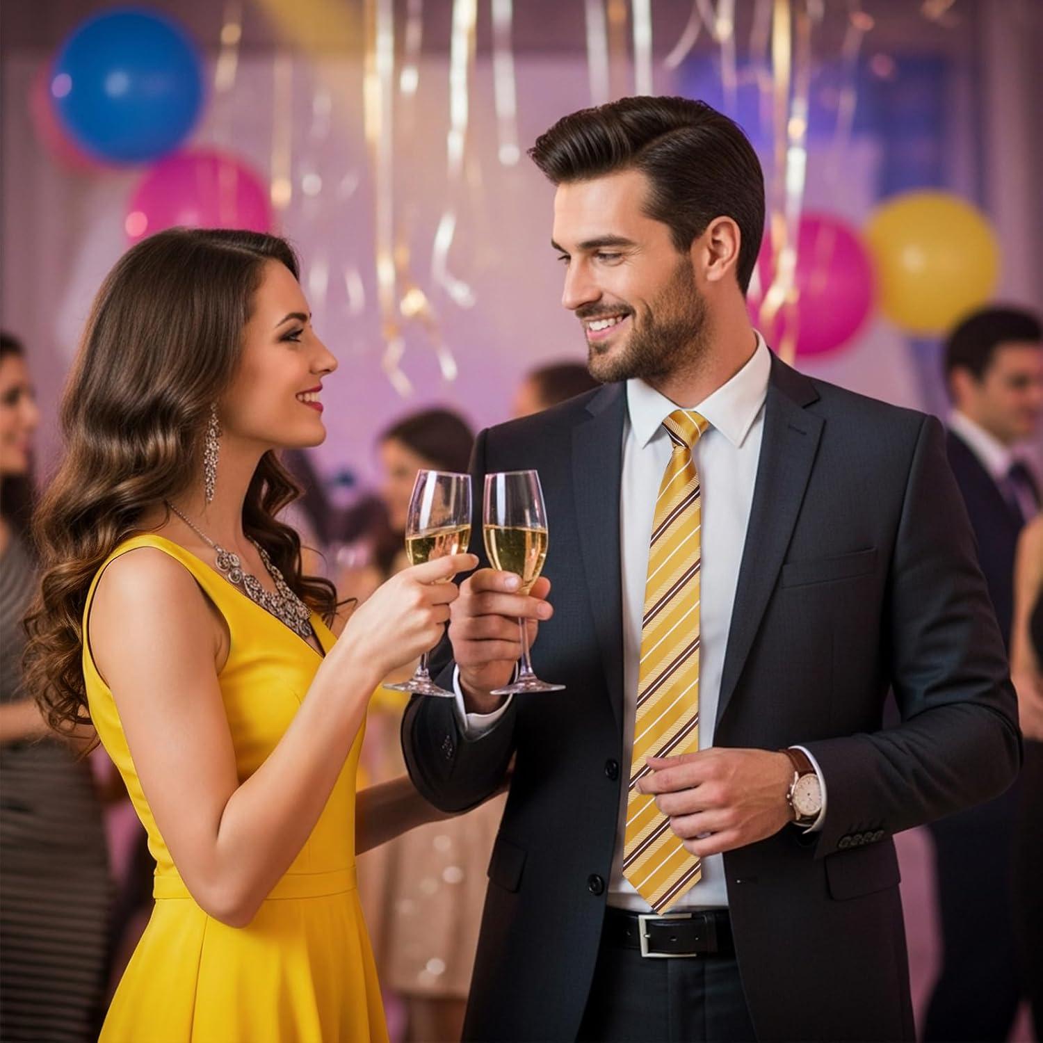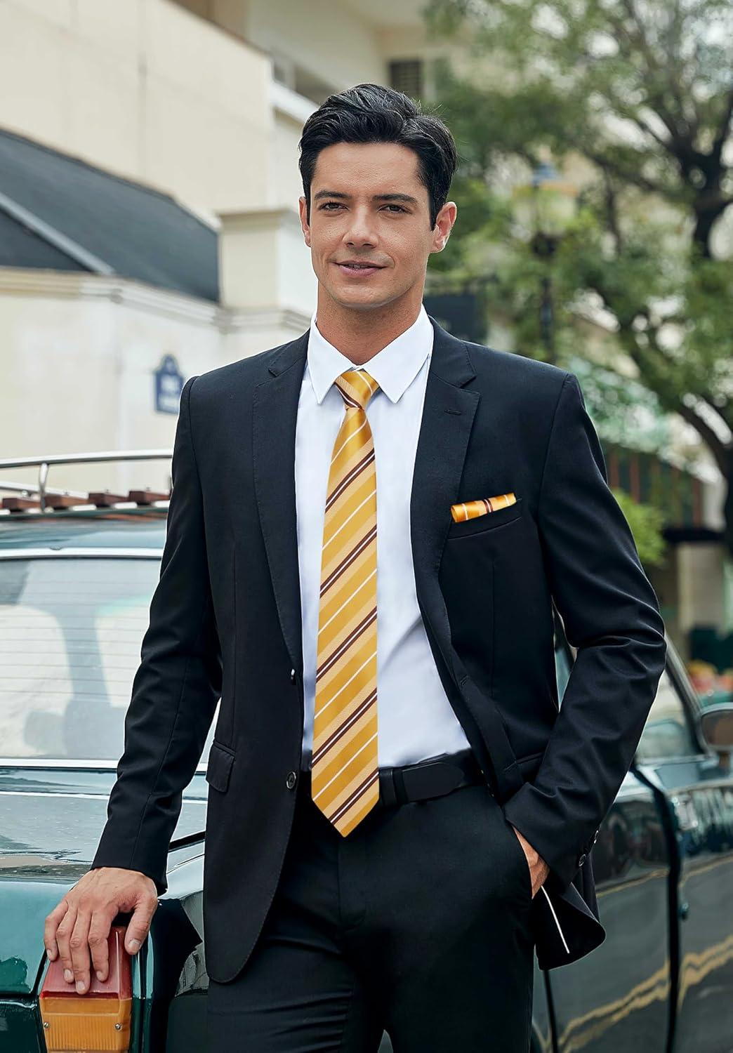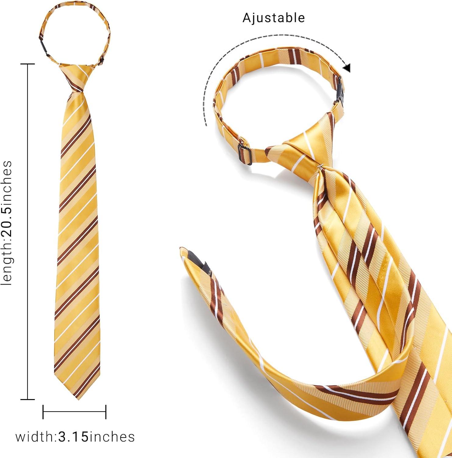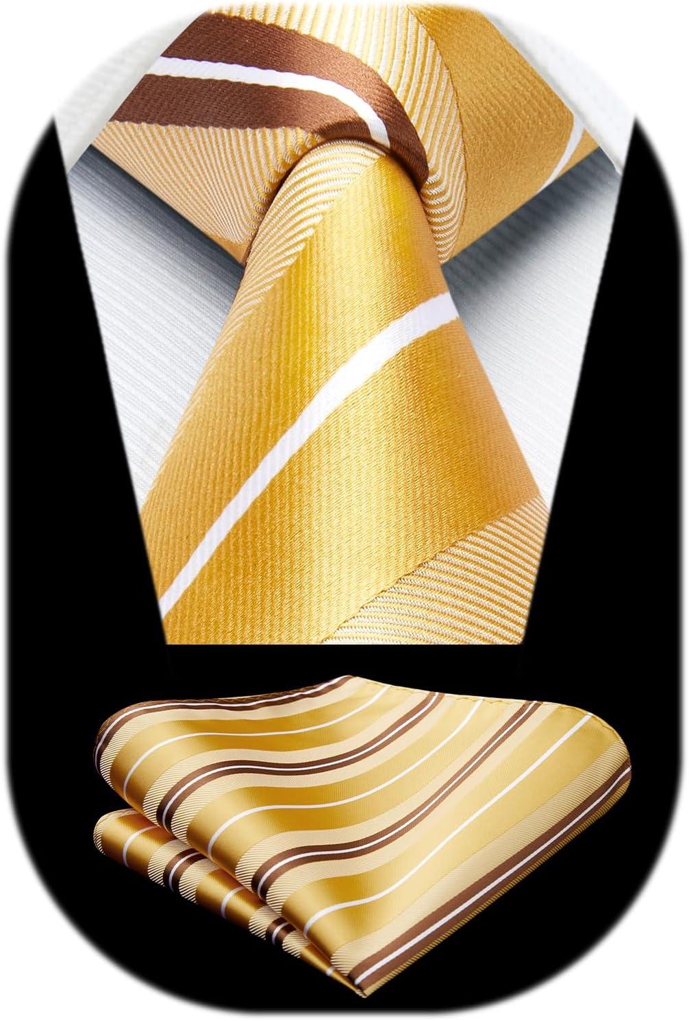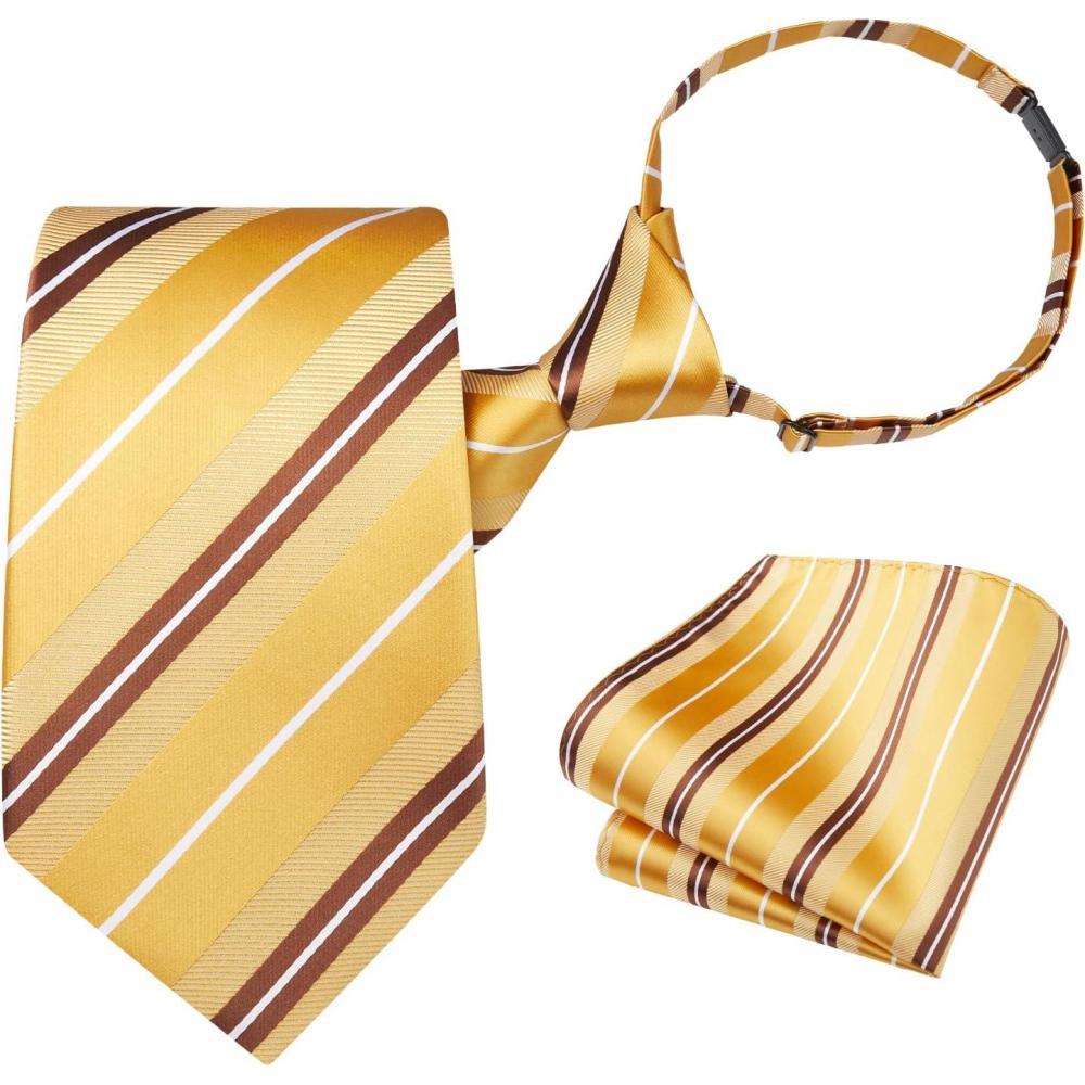 HISDERN Pre Tied Ties for Men Adjustable Mens Tie Classic Paisley Stripe Necktie and Pocket Square Set for Wedding Party(Y-yellow Striped)
