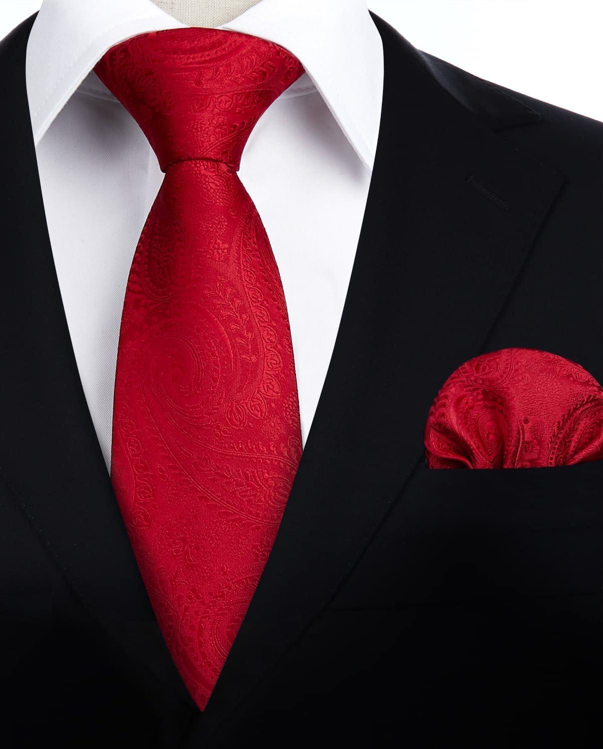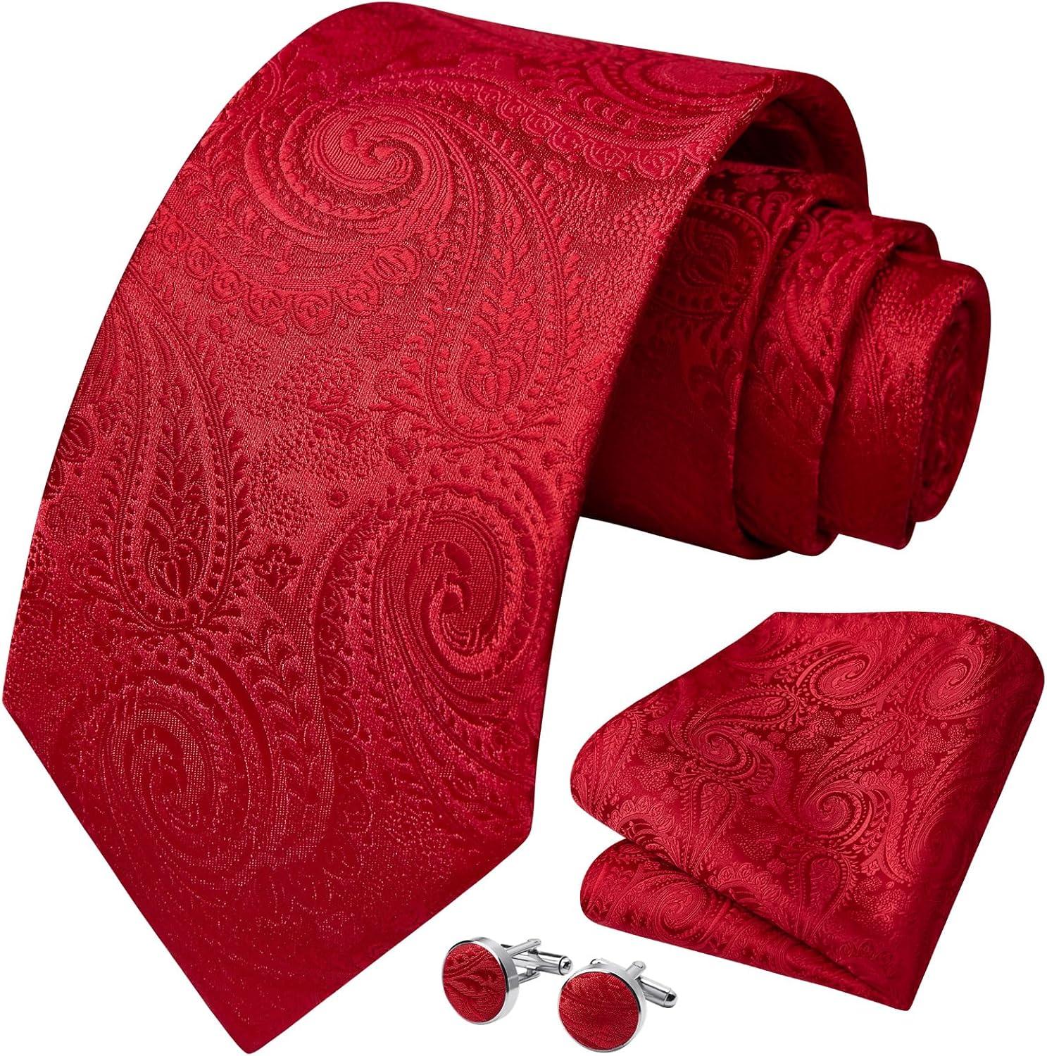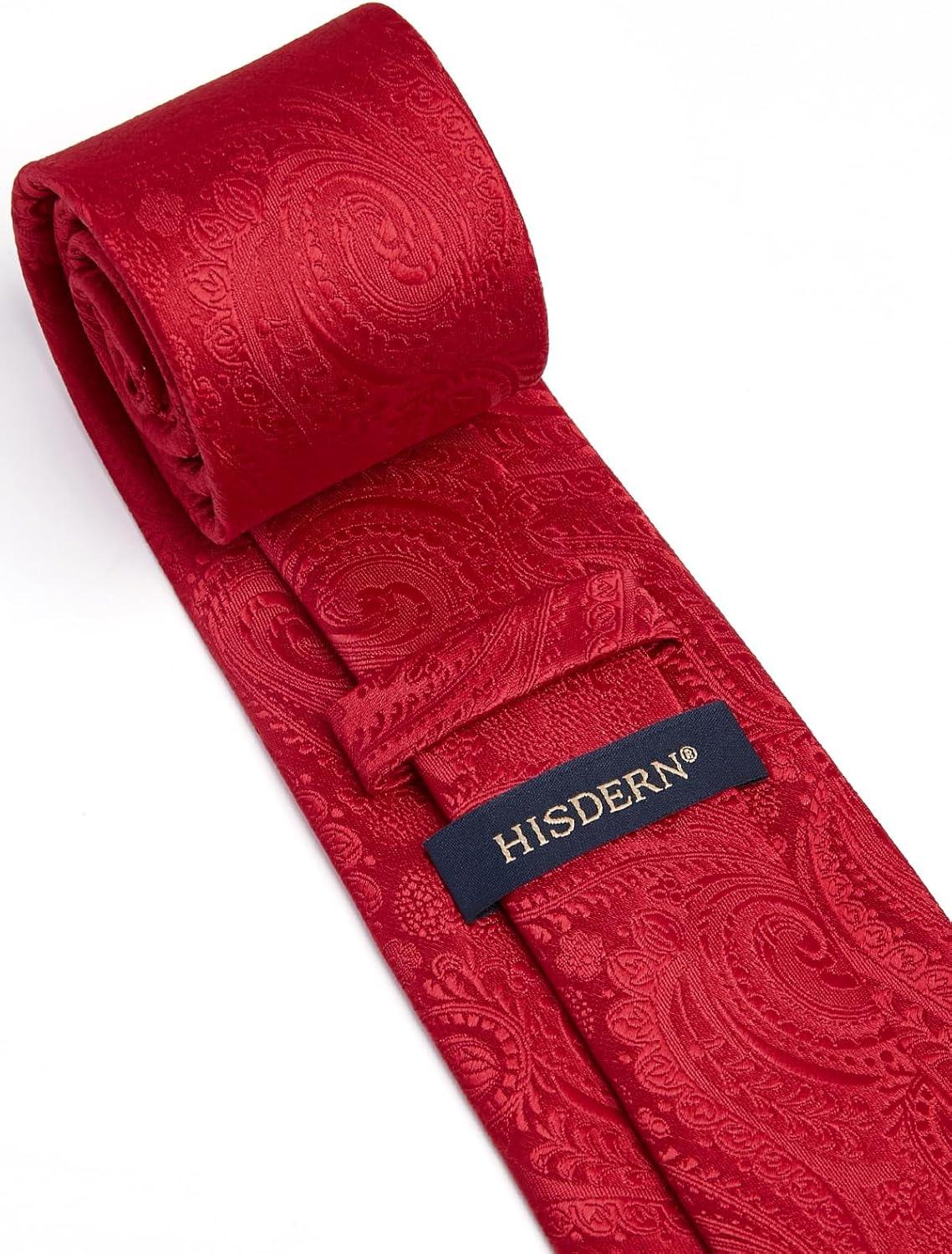 HISDERN Ties for Men Paisley Floral Mens Ties and Pocket Square Cufflinks Set Classic Business Necktie Handkerchief(A1-red1)
