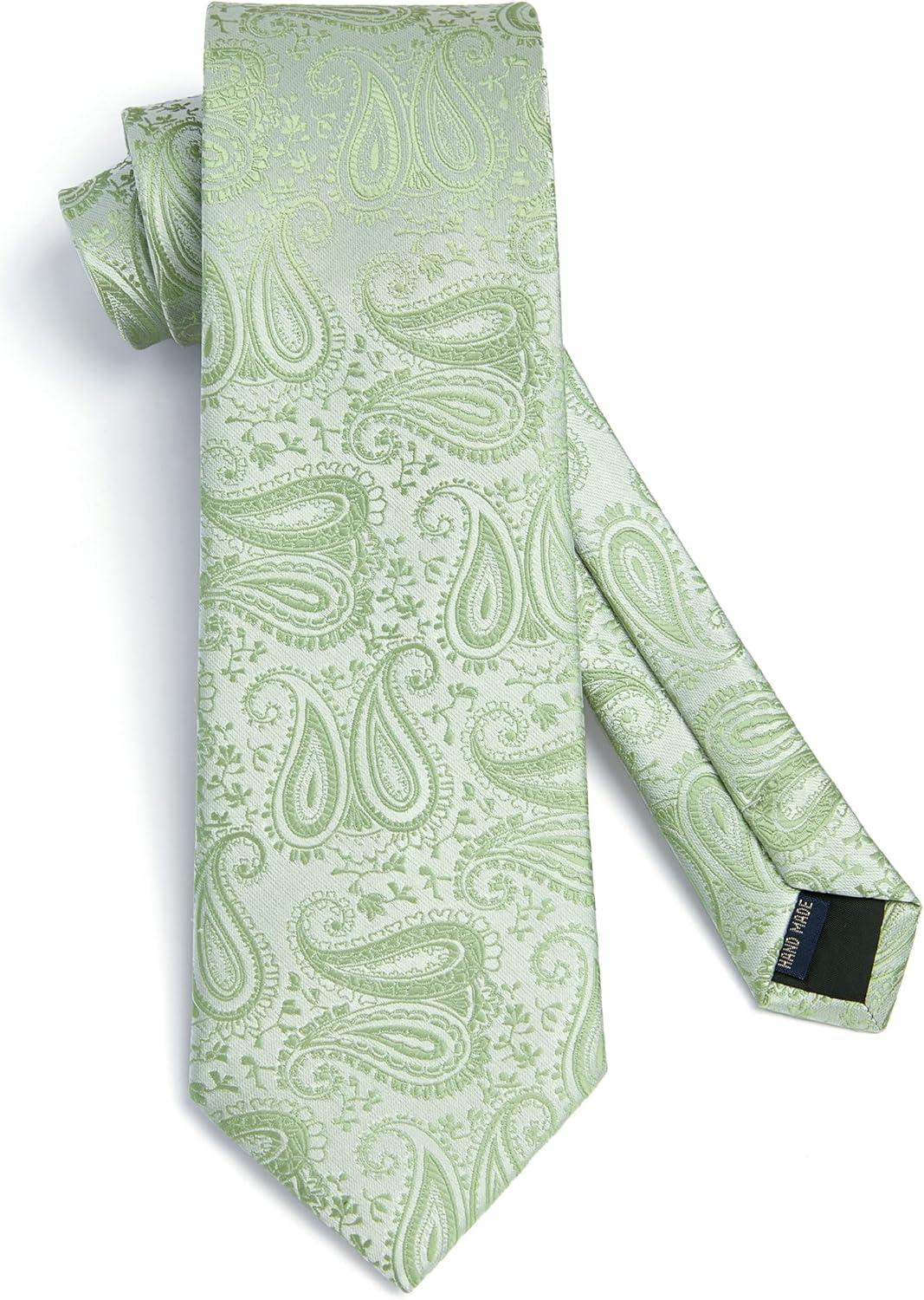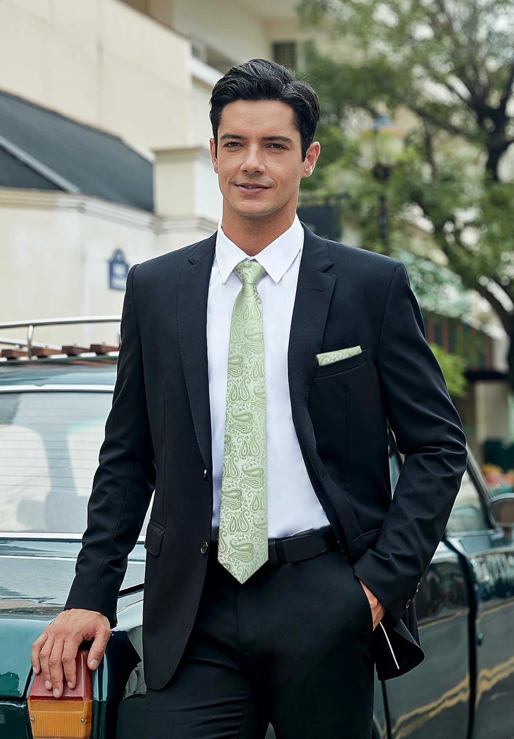 HISDERN Ties for Men Paisley Floral Mens Ties and Pocket Square Cufflinks Set Classic Business Necktie Handkerchief(B1-green)