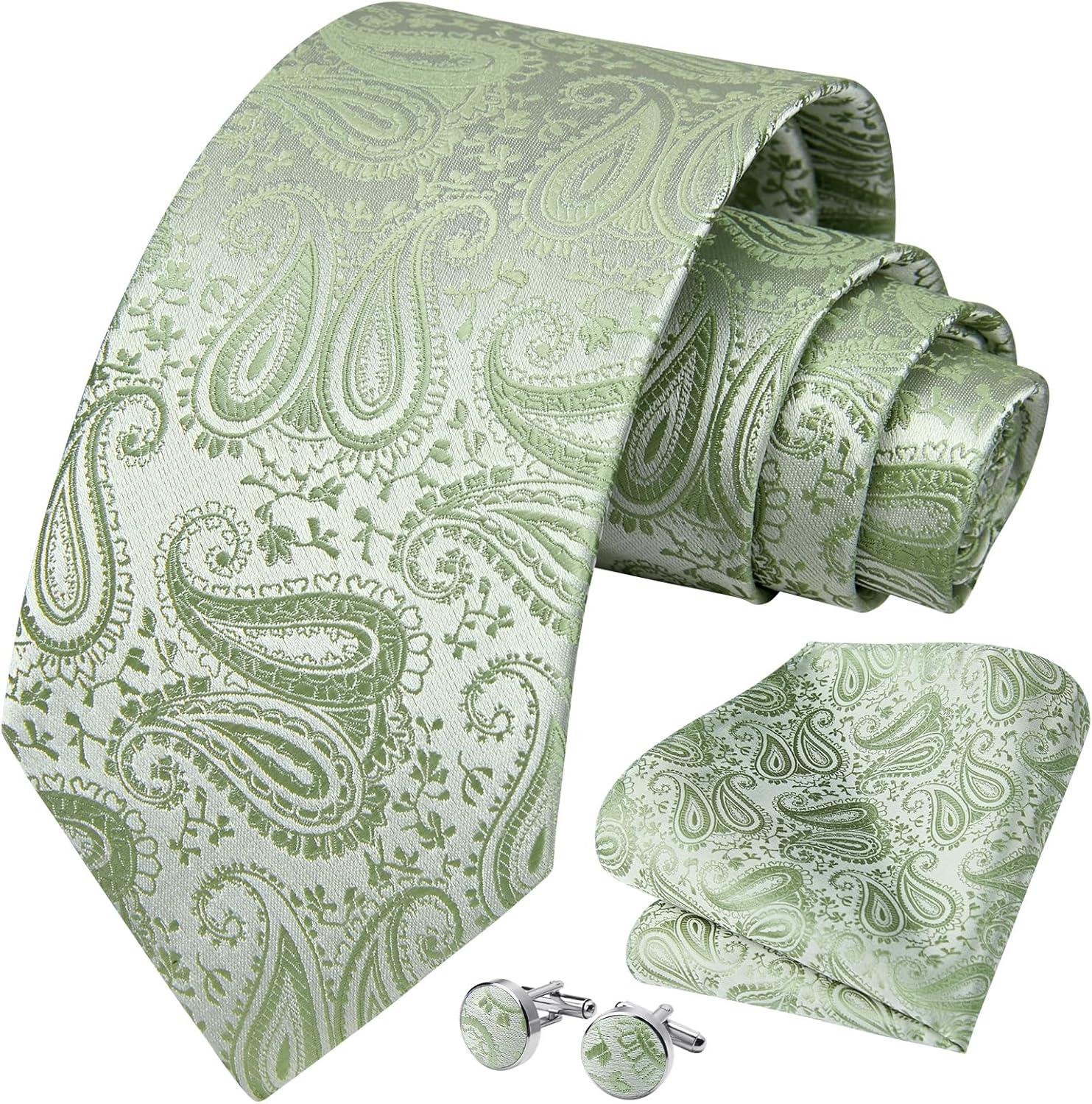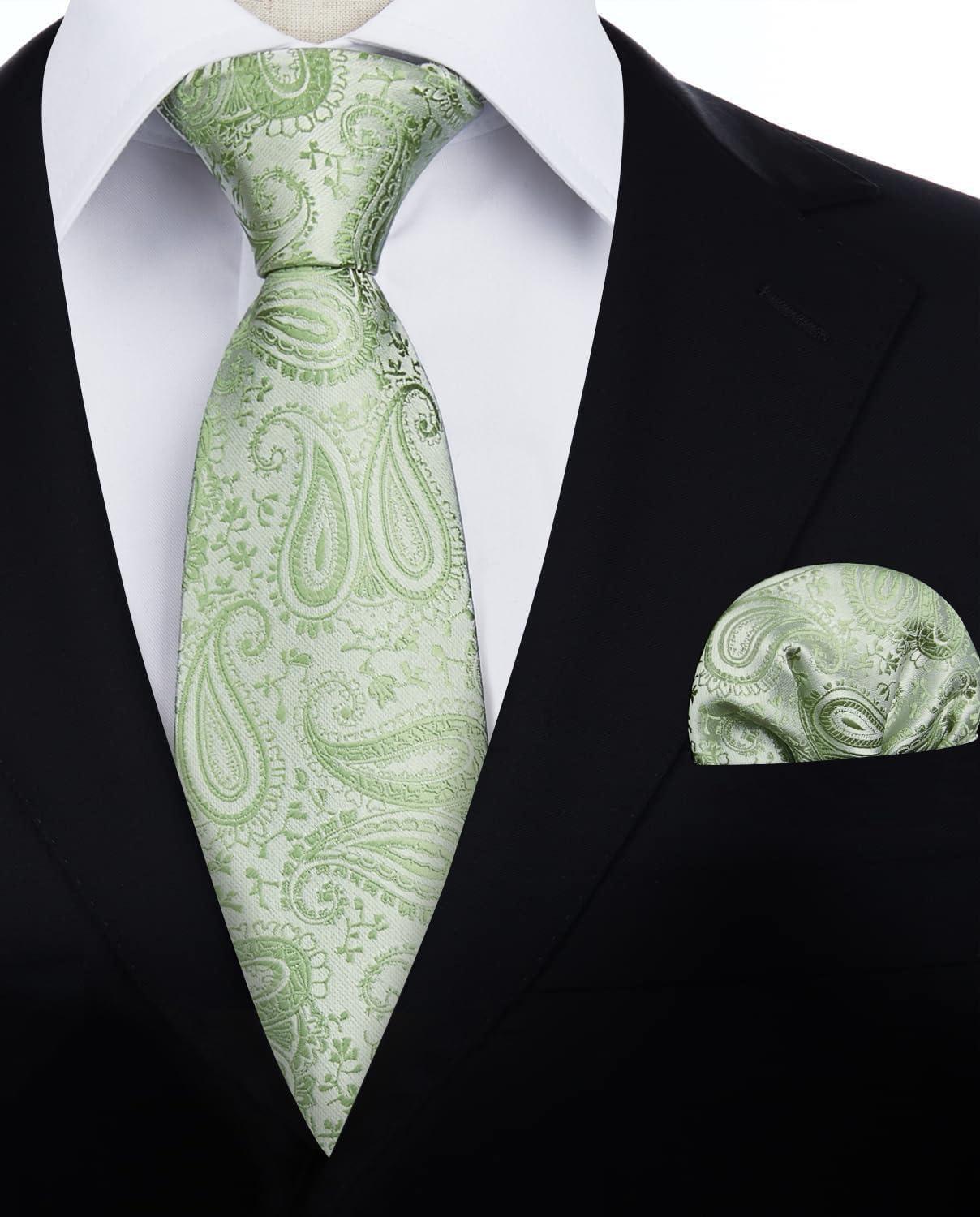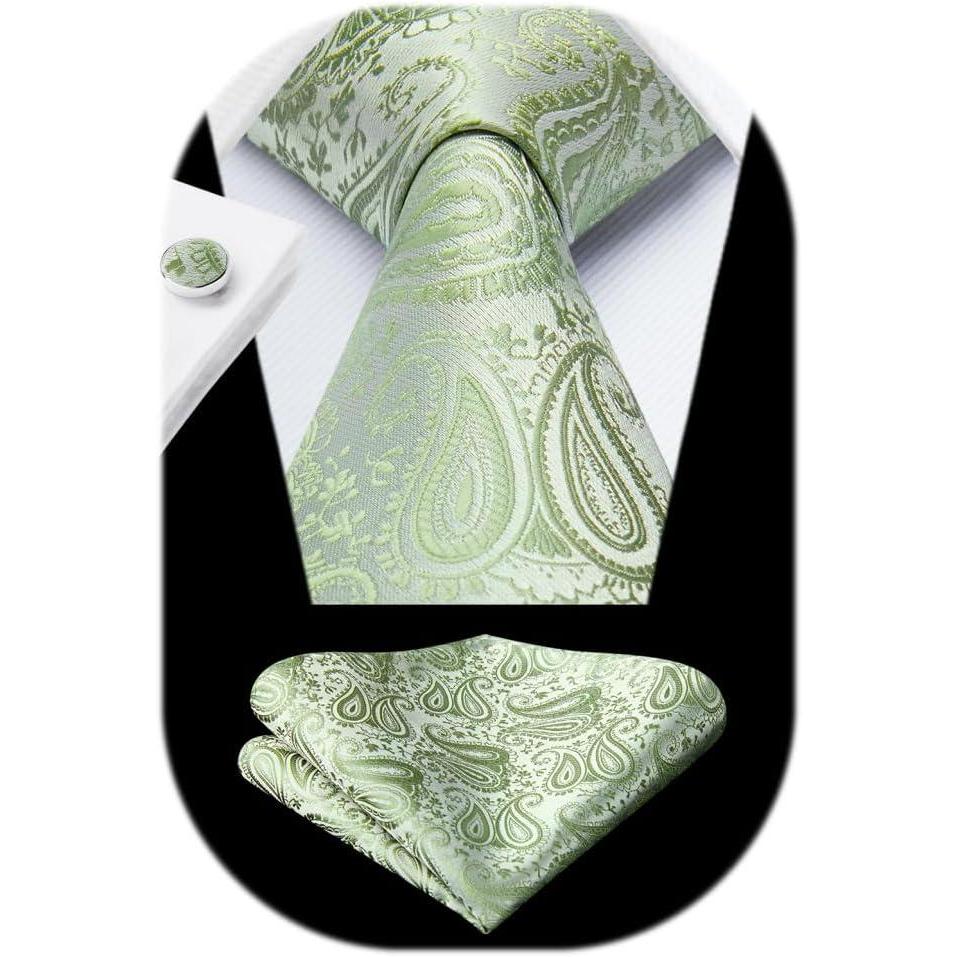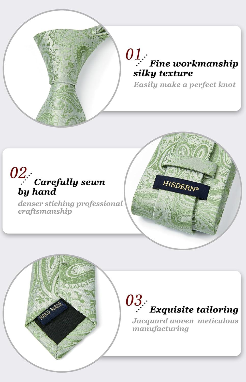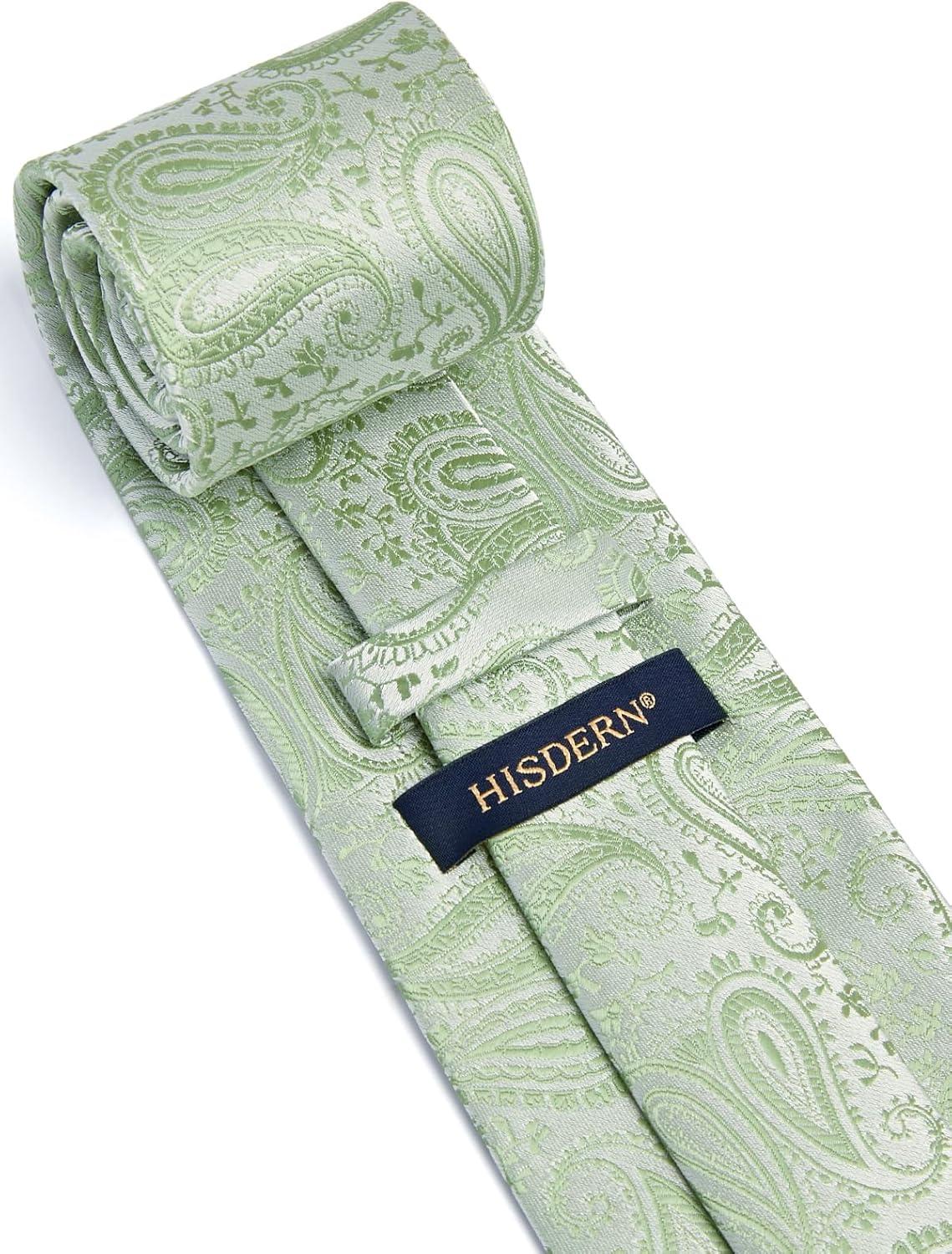 HISDERN Ties for Men Paisley Floral Mens Ties and Pocket Square Cufflinks Set Classic Business Necktie Handkerchief(B-sage Green)