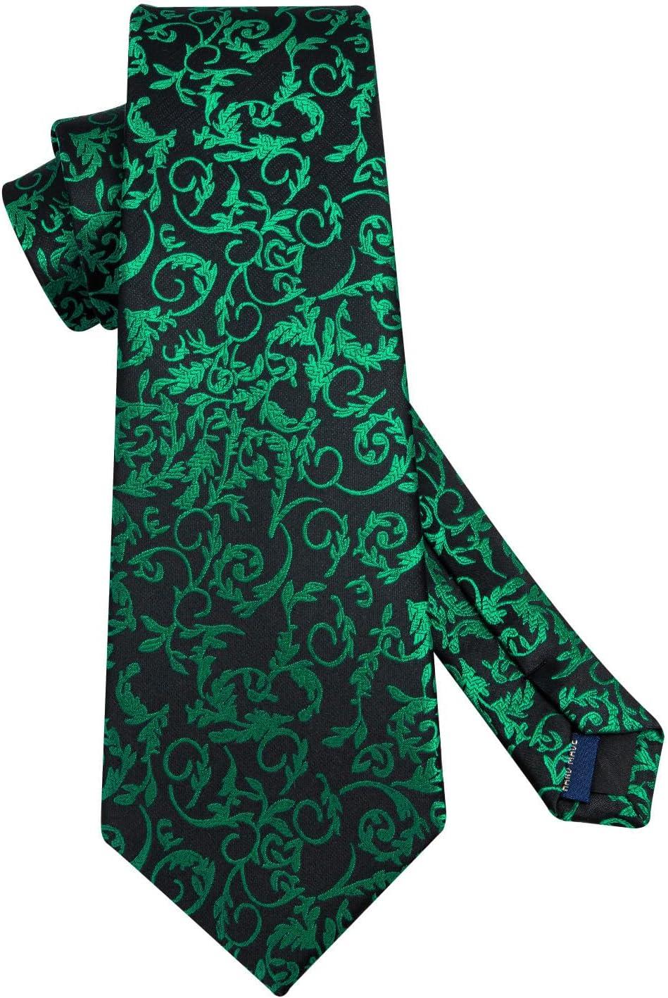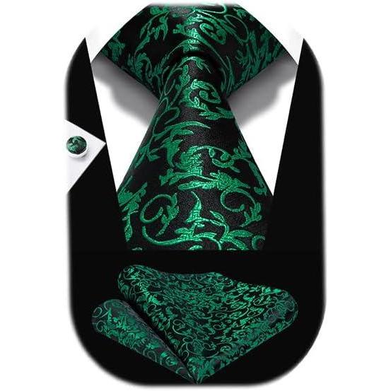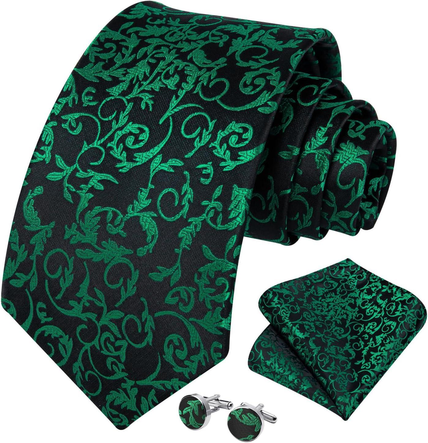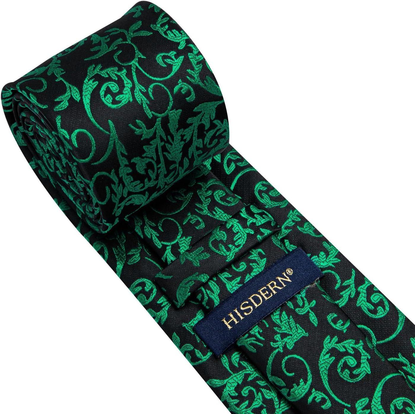 HISDERN Ties for Men Paisley Floral Mens Ties and Pocket Square Cufflinks Set Classic Business Necktie Handkerchief(B2-green)