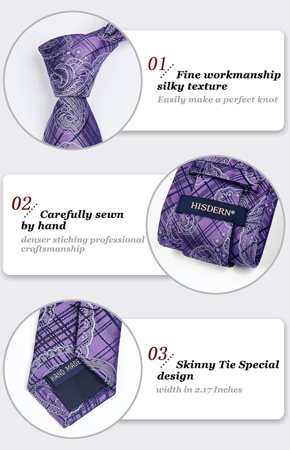 HISDERN Ties for Men Paisley Floral Mens Ties and Pocket Square Cufflinks Set Classic Business Necktie Handkerchief(D4-purple)