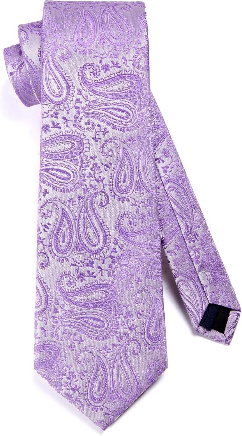 HISDERN Ties for Men Paisley Floral Mens Ties and Pocket Square Cufflinks Set Classic Business Necktie Handkerchief(D5-purple)