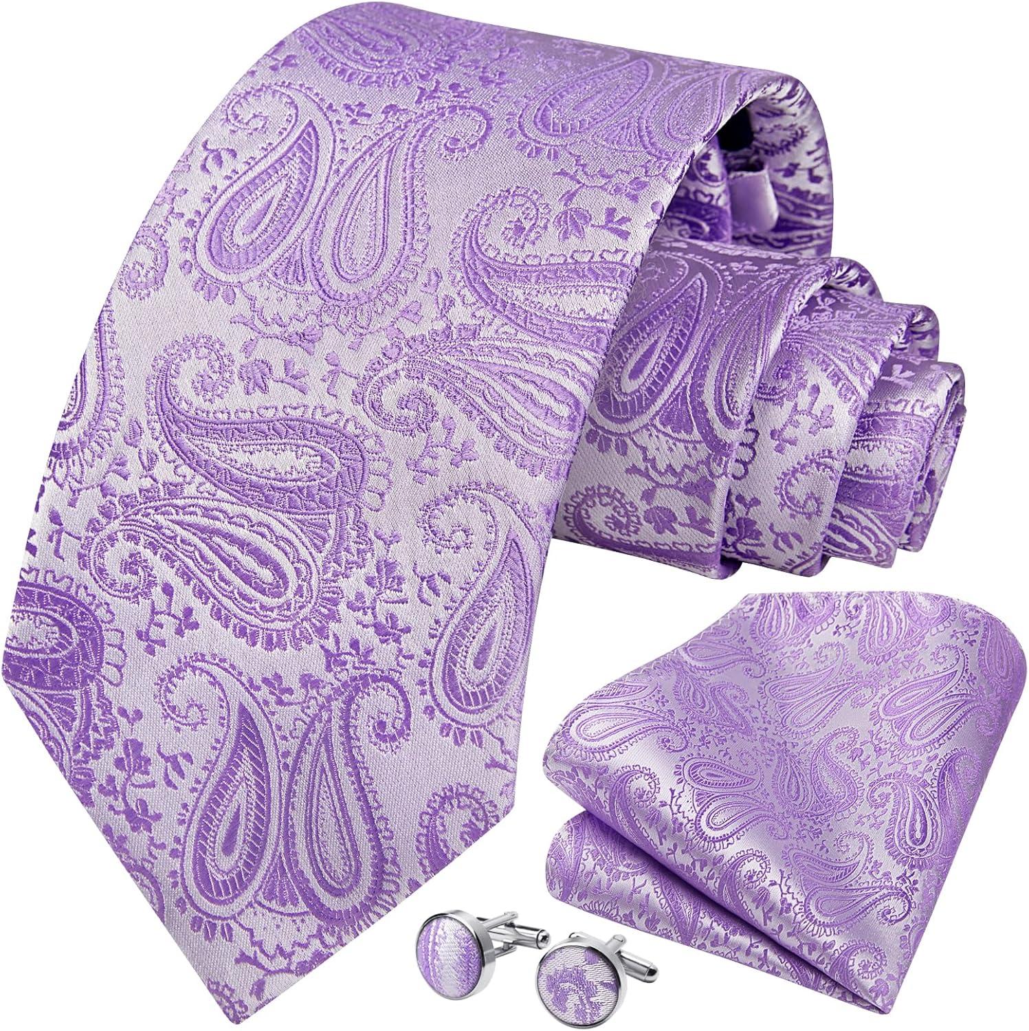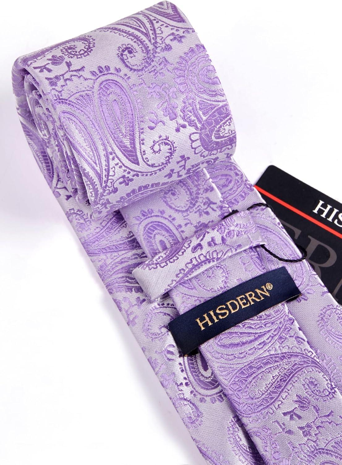 HISDERN Ties for Men Paisley Floral Mens Ties and Pocket Square Cufflinks Set Classic Business Necktie Handkerchief(D3-purple)