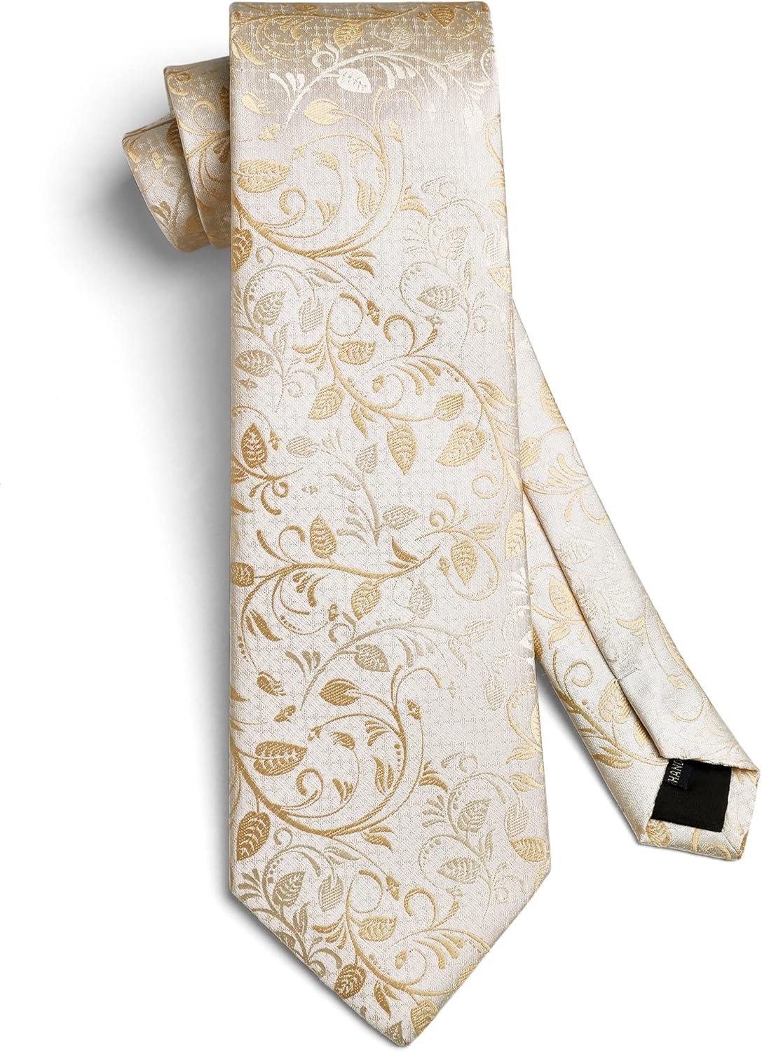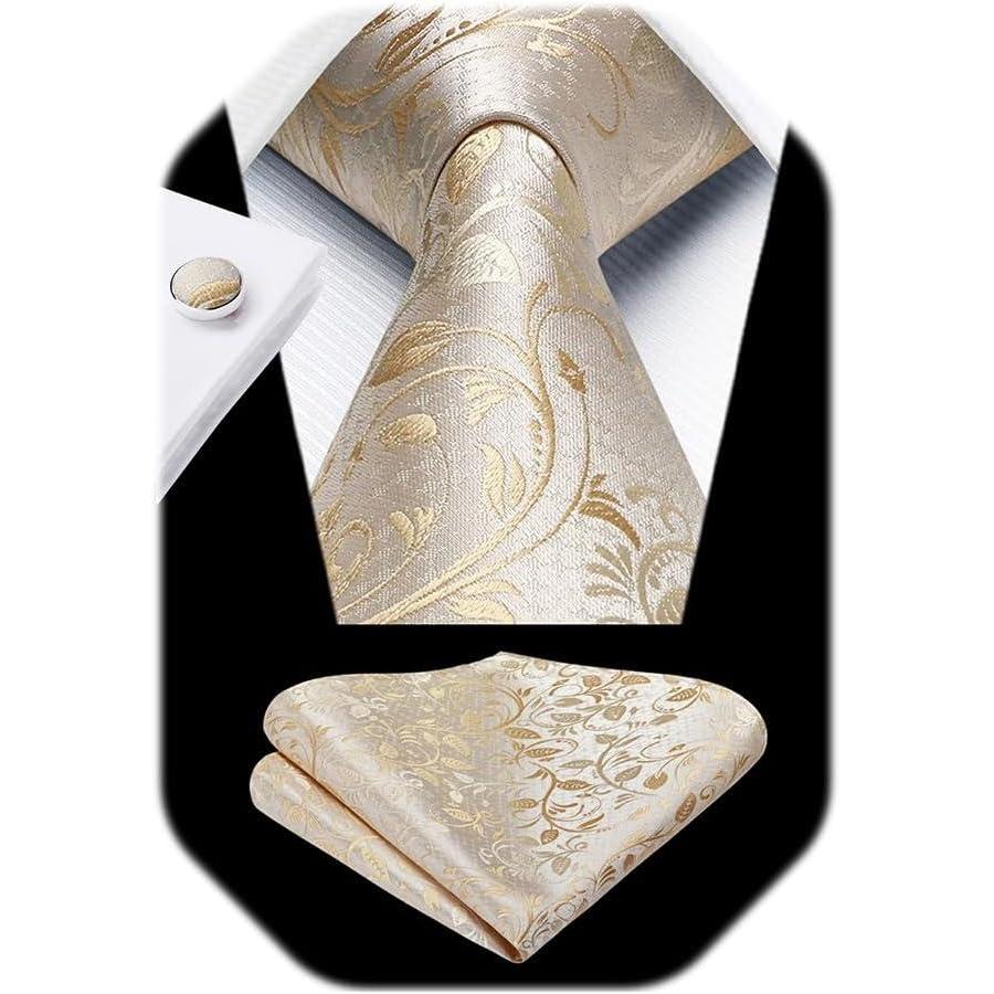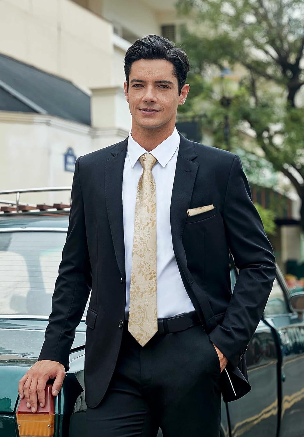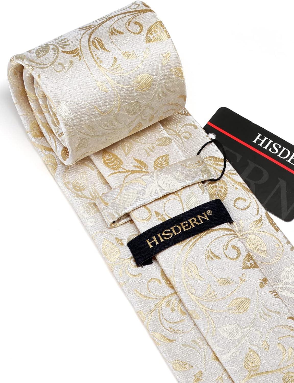 HISDERN Ties for Men Paisley Floral Mens Ties and Pocket Square Cufflinks Set Classic Business Necktie Handkerchief(E-gold)