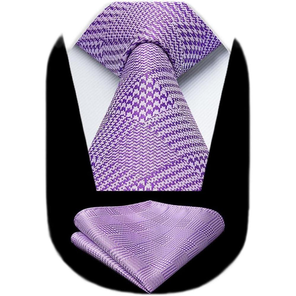 HISDERN Ties for Men Silk Extra Long Tie and Pocket Square Classic Plaid Checkered 63 inches Men’s Neckties Business(A9-light Purple)