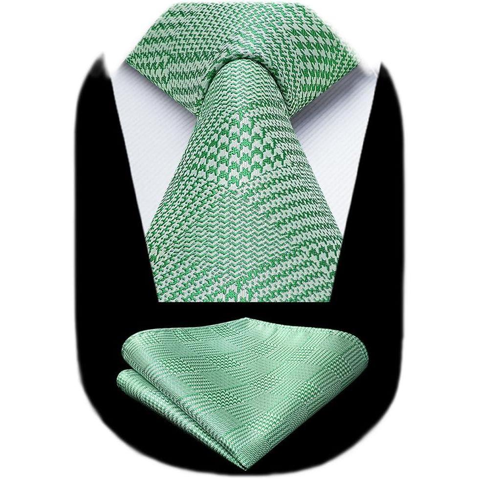 HISDERN Ties for Men Silk Extra Long Tie and Pocket Square Classic Plaid Checkered 63 inches Men’s Neckties Business(B6-aqua Green)