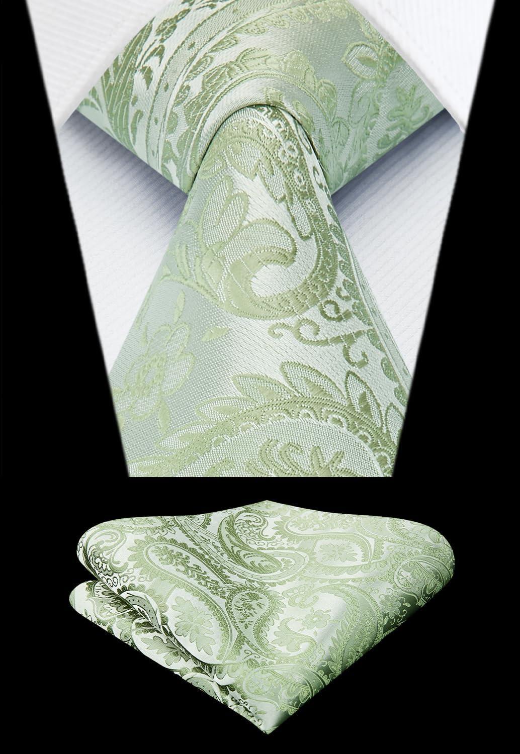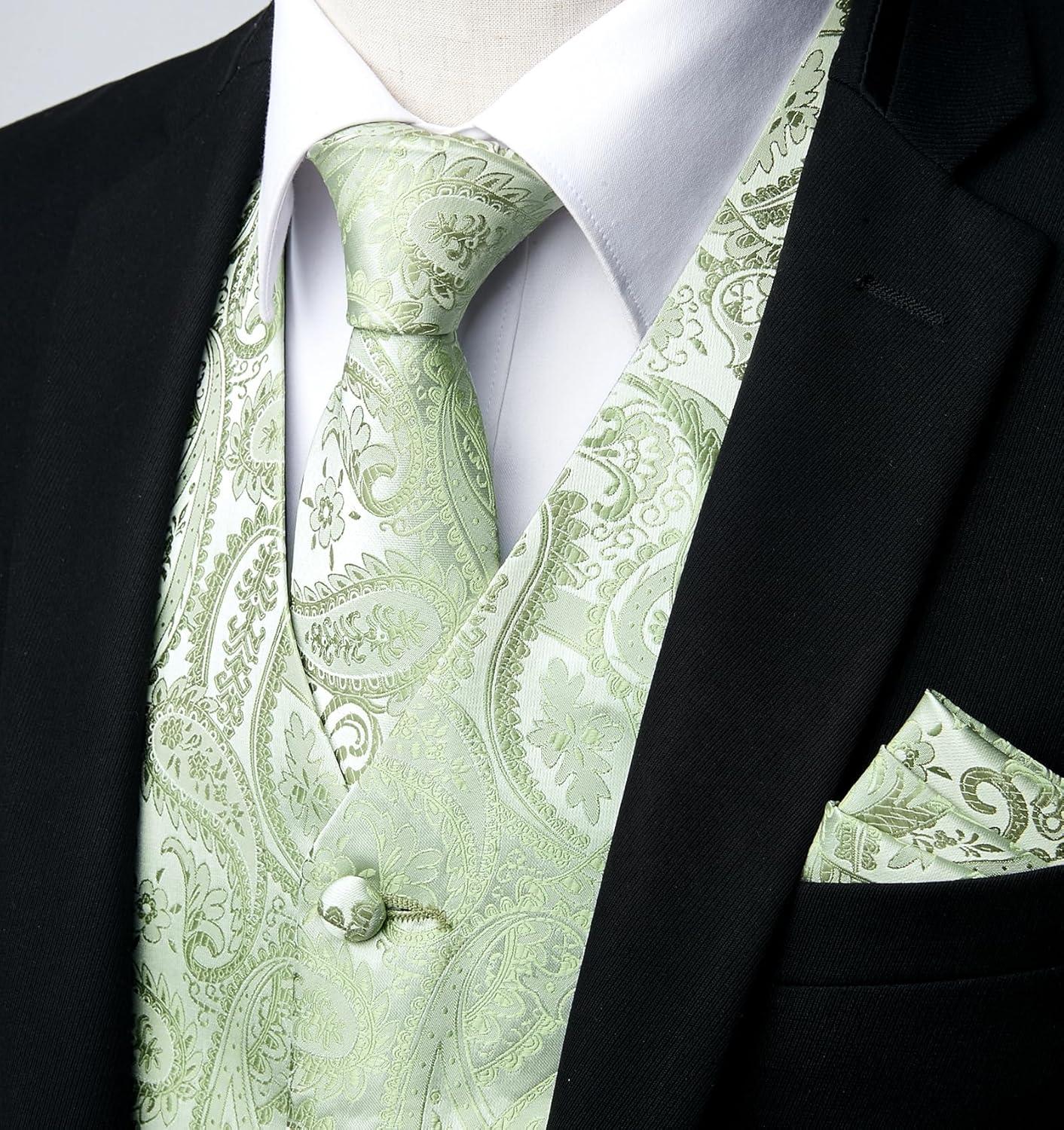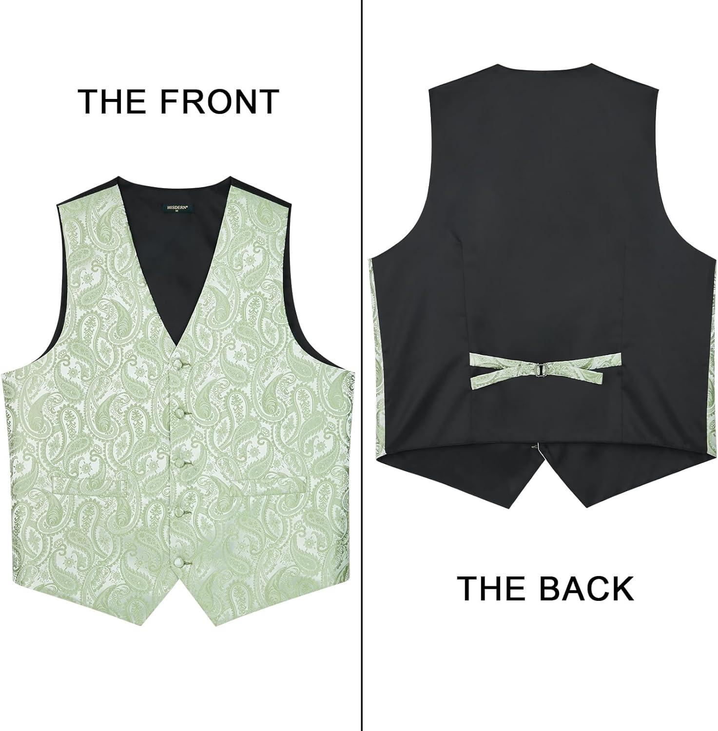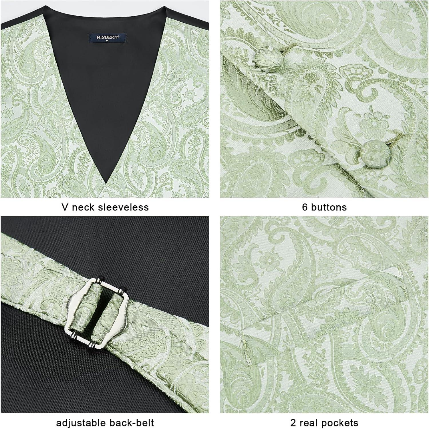 HISDERN V3-01 Men’s 3PCS Formal Vest Set Slim Fit Jacquard Waistcoat with Paisley Floral Pattern for Wedding Prom Party(C-sage Green)