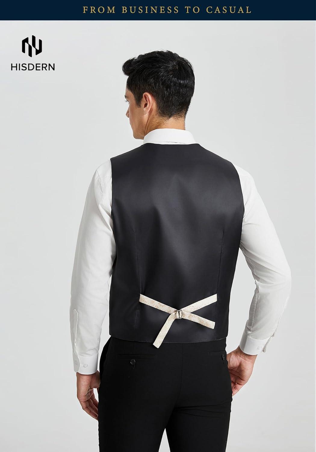 Experience elegance with Men's Suit Vest. The suit vest is a crafted blend of silk and polyester, providing a luxurious sheen and a comfortable feel. It stands for quality, durability and a touch of elegance. These vest sizes are not the same as the US size. Please check the size chart carefully on the product picture instead of the Amazon size chart.10 optional size; Tie Width: 3.4 inches & Tie Length: 59 inches; Handkerchief size: 12 inches x 12 inches.The paisley jacquard pattern is a timeless design that adds a level of sophistication to any outfit. The vibrant solid color are suitable to make you stand out in the crowd. V neck, 2 pockets,5 button front, and features an adjuster strap in the back to take in or let out for a proper fit.This 3 piece set includes a suit vest, necktie, and pocket square. They can be paired with shirts, suits, tuxedos, and even jeans to create an Eye-Catching outfit for any occasion.Whether it's a Wedding, Graduation, prom, Party, Show or formal meeting, Office, Working, this suit vest set is your go-to choice. It’s a Surprise present for Father's Day, wedding, birthday, Christmas, Halloween, and Thanksgiving Day.