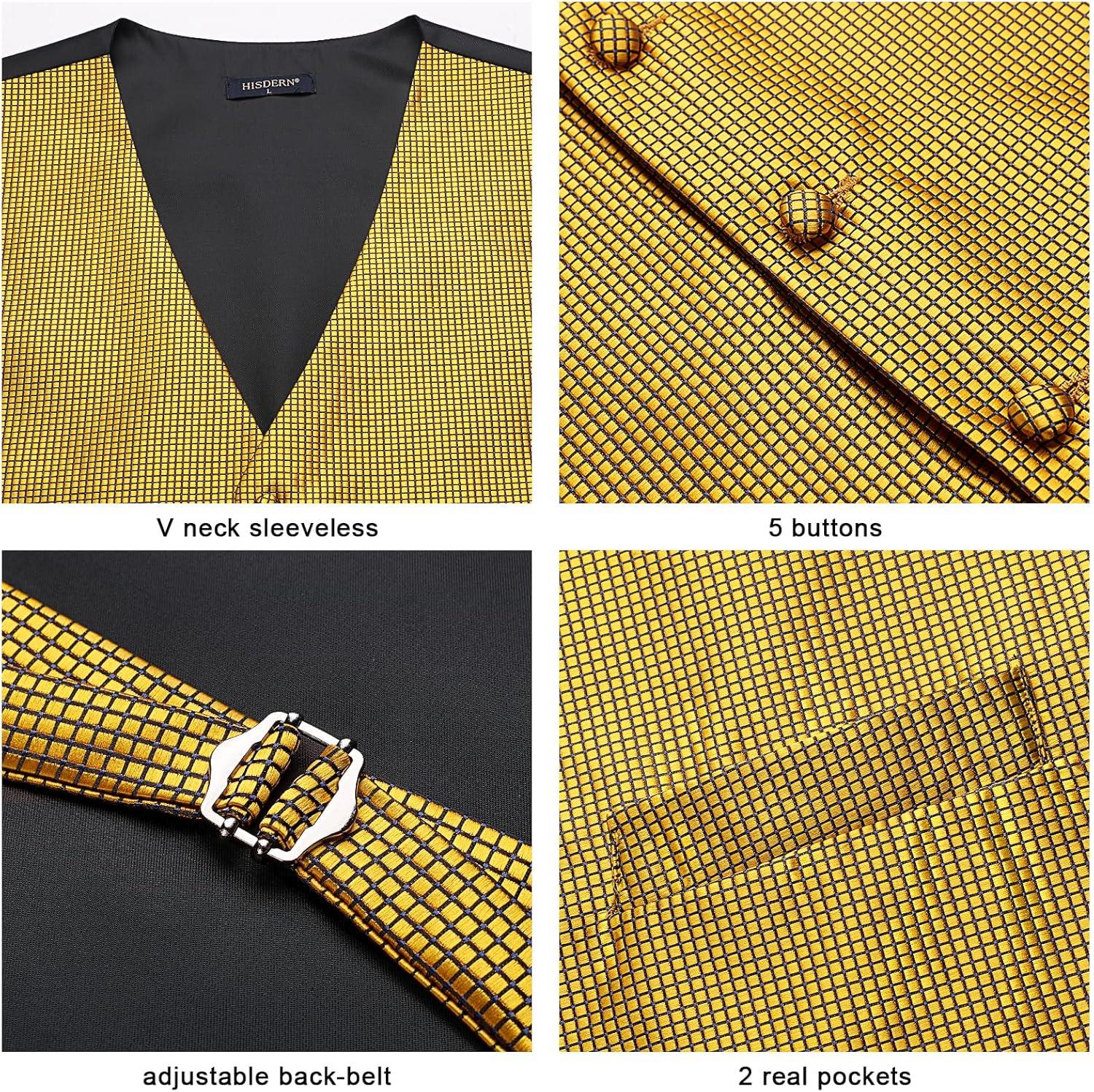 HISDERN V3-01 Men’s 3PCS Formal Vest Set Slim Fit Jacquard Waistcoat with Paisley Floral Pattern for Wedding Prom Party(F-01 Yellow Paisley)